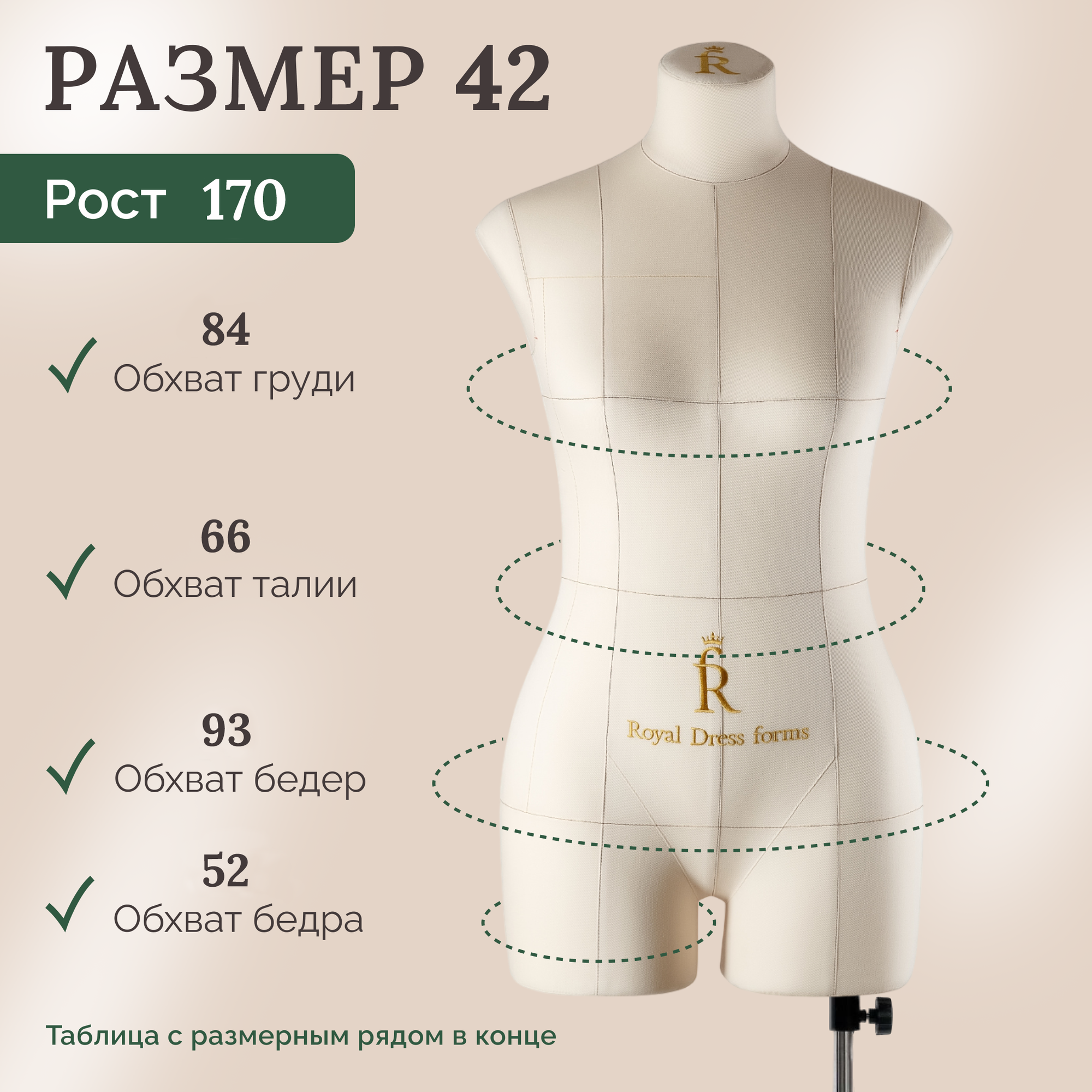 Манекен портновский Моника Royal Dress forms комплект Стандарт размер 42 цвет бежевый информация: