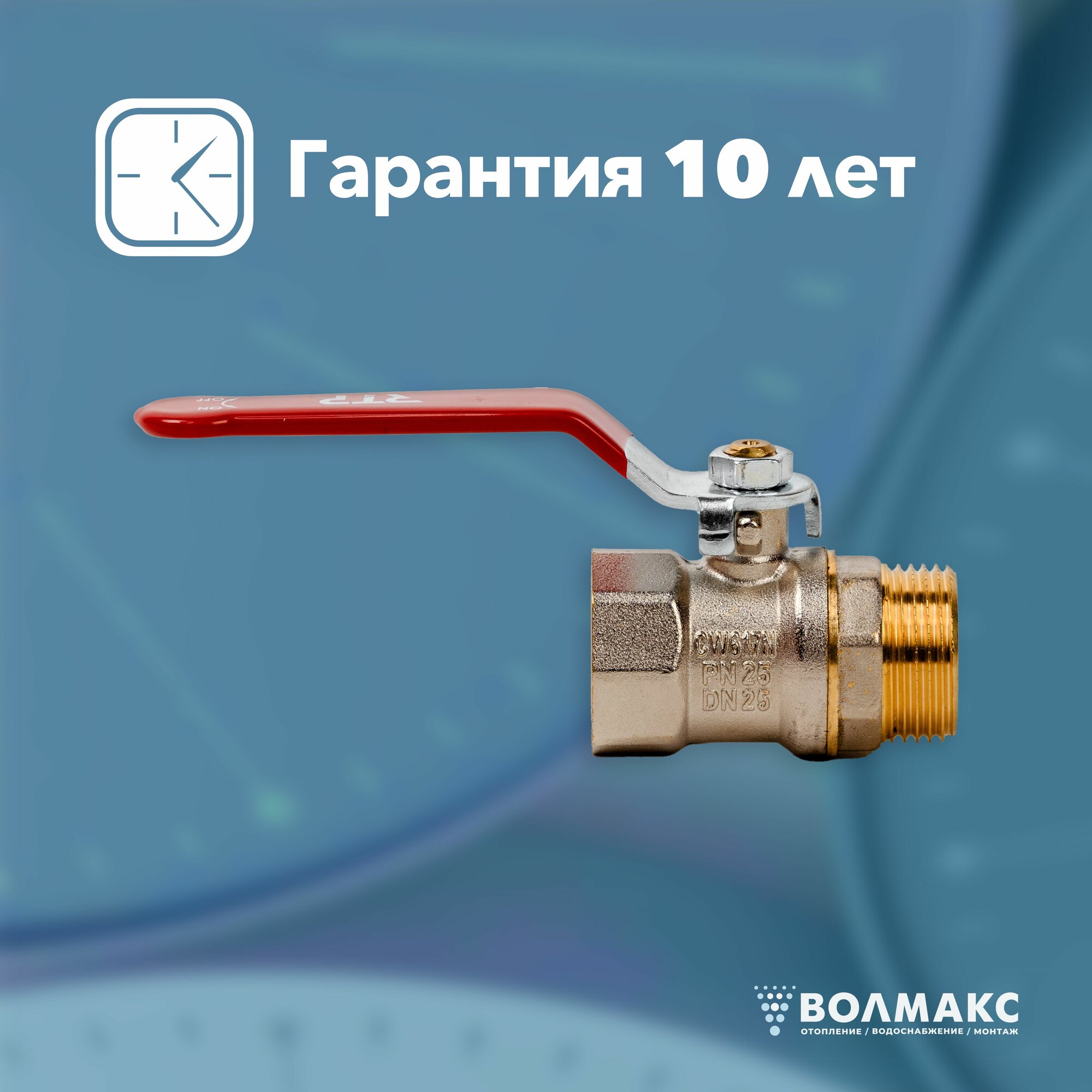 Шаровой кран 3/4 дюйма RTP вн/нар PN 25 латунный, ручка рычаг информация: