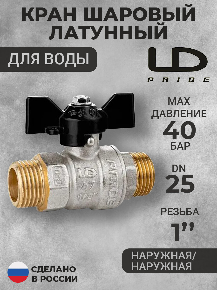 Шаровой кран латунный 1" НР, ручка-бабочка, LD Pride 47.25.Н-Н.Б