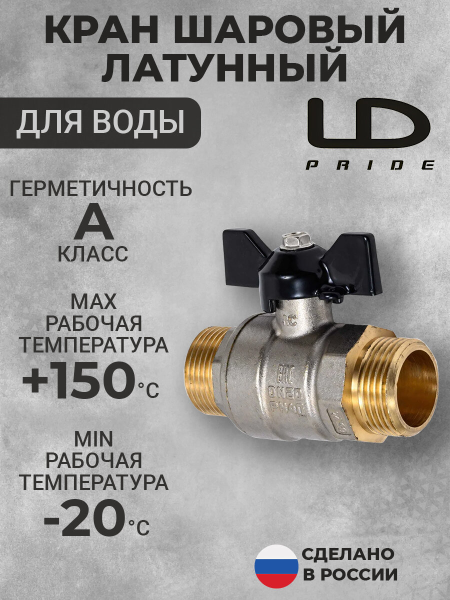 Кран шаровой латунный для воды LD Pride 47.25. Н-Н. Б 1" бабочка информация: