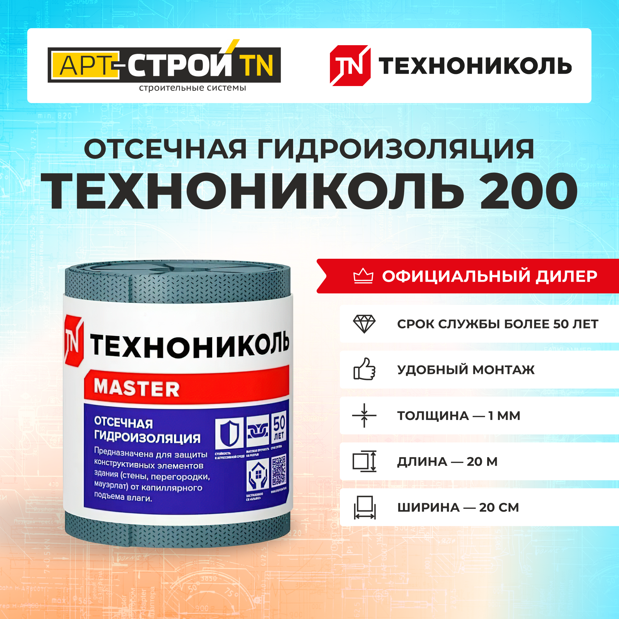 Отсечная гидроизоляция технониколь рулонная 200 мм х 20 м для защиты конструкций зданий информация: