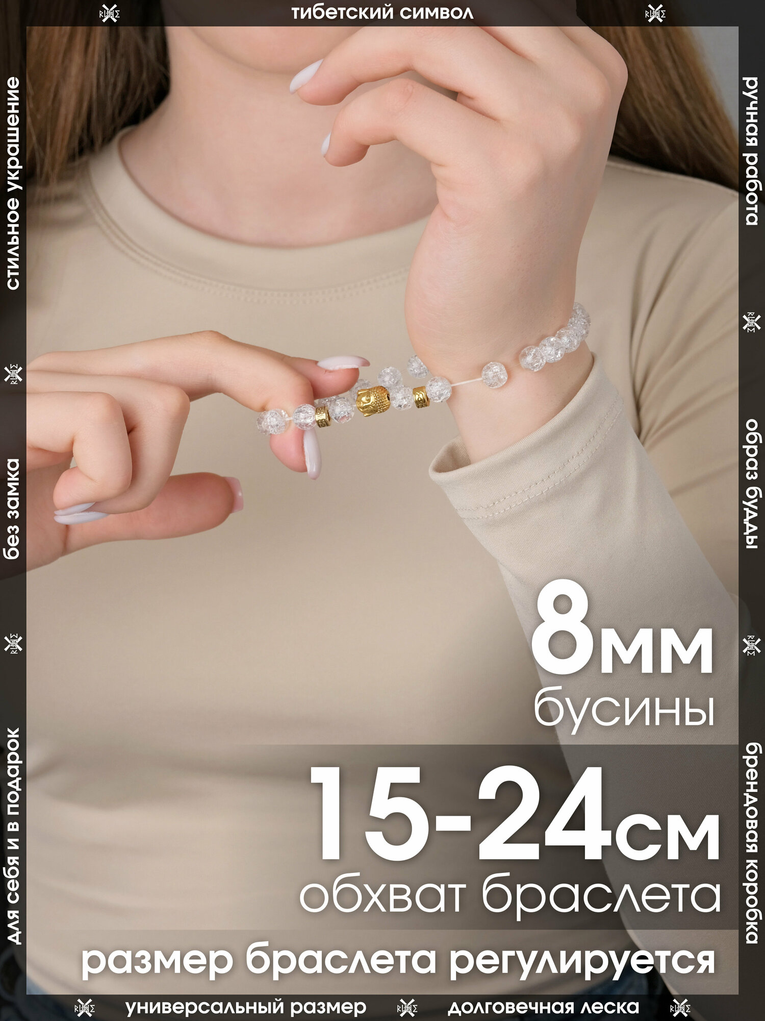 Защитный тибетский браслет Будда из камня Сахарный кварц/Охранный оберег-талисман из бусин на руку прозрачный/Бижутерия для мужчин и женщин 590 ₽