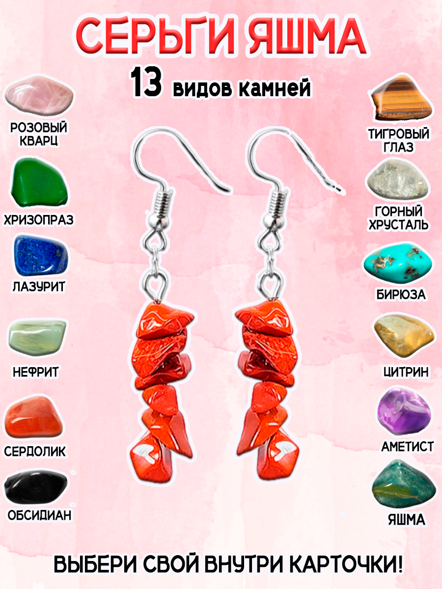 Серьги ОптимаБизнес, хризопраз, сердолик, аметист, нефрит, лазурит, горный хрусталь, обсидиан, тигровый глаз, яшма 380 ₽
