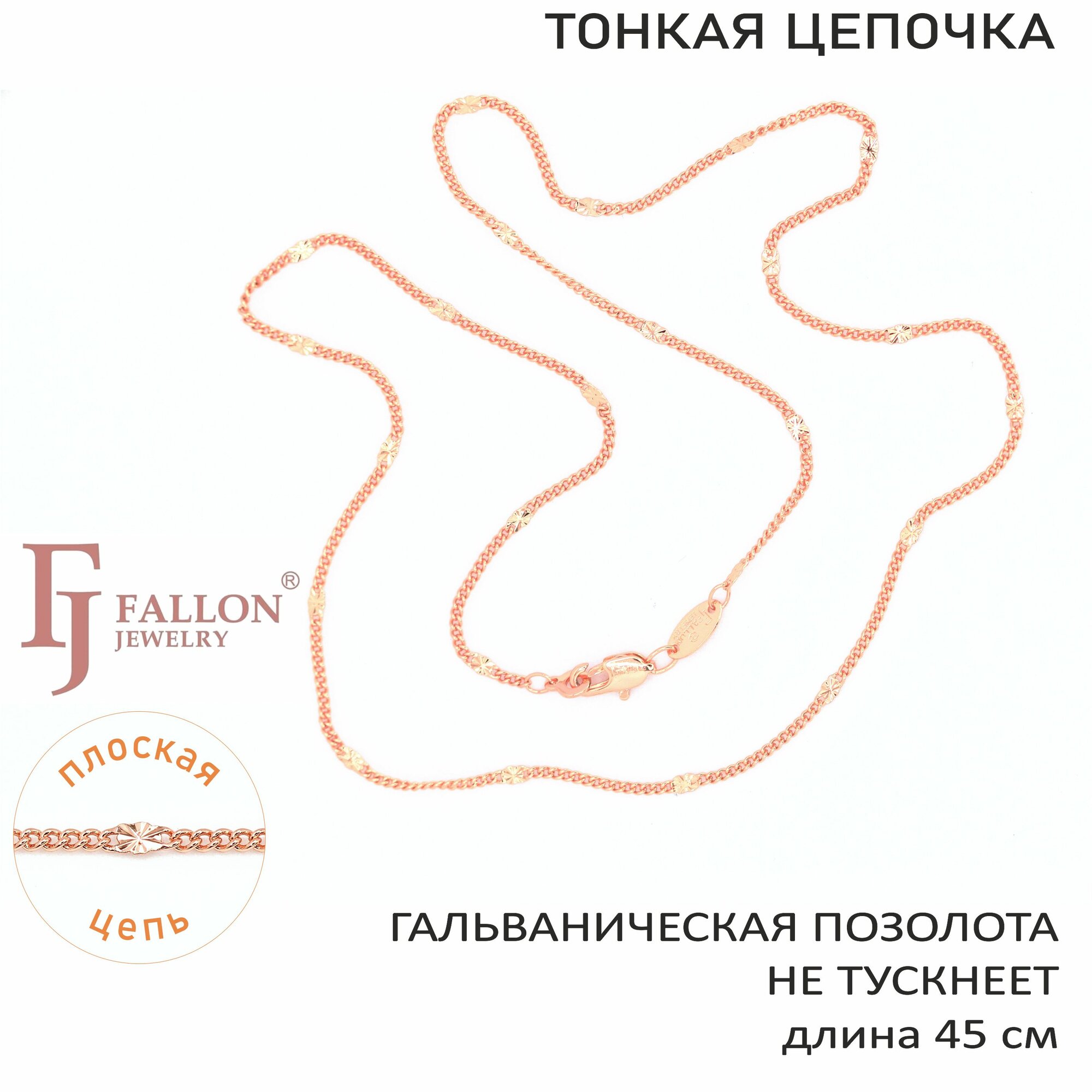 Цепочка тонкая с "золотинками" 45 см, ширина 1,2 мм, FALLON JEWELRY, гальваническая позолота 939 ₽
