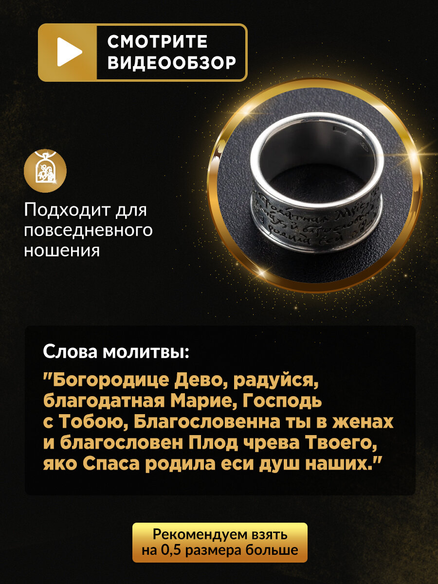 Кольцо серебряное женское "Молитва Пресвятой Богородице" 19 р. Ангельская925 604 4 800 ₽
