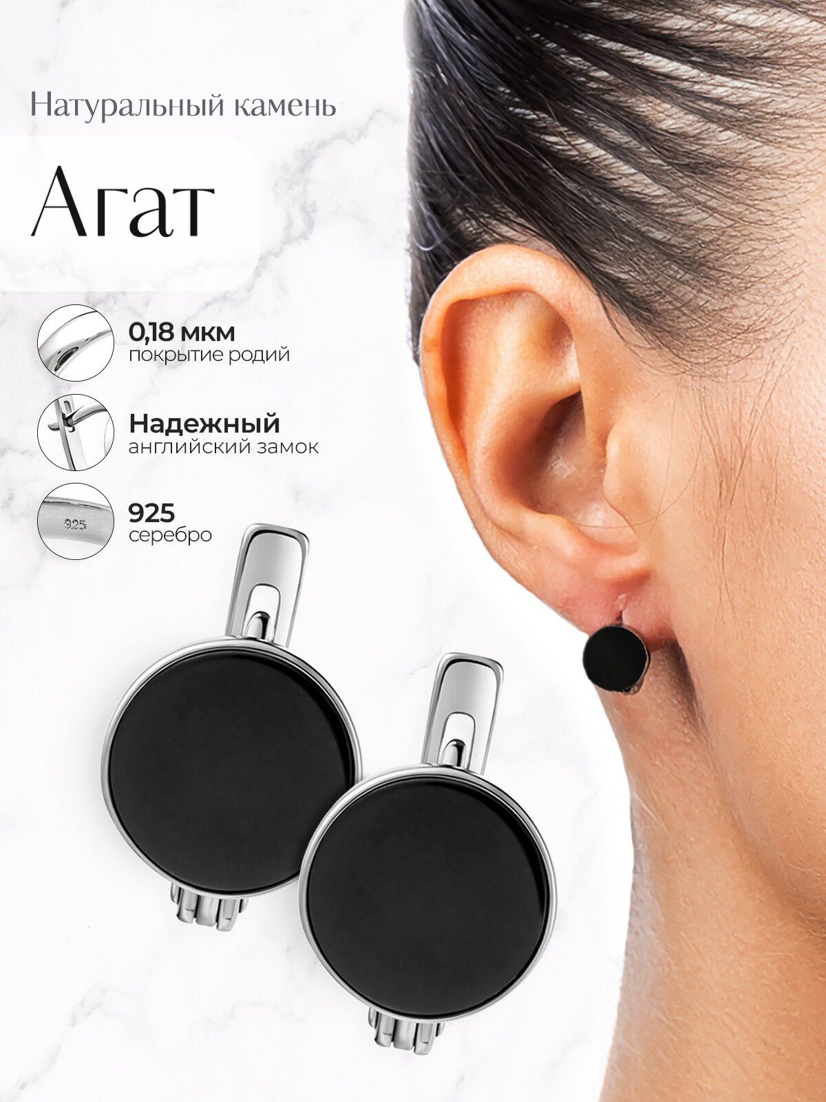 Отзывы на Серьги TOP CRYSTAL, серебро, 925 проба, родирование, агат, размер 21 мм, длина 2.1 см, , серебристый/черный