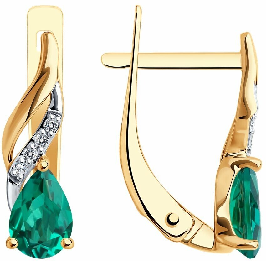 Отзывы на Серьги SOKOLOV, красное золото, 585 проба, бриллиант, изумруд, размер 16 мм