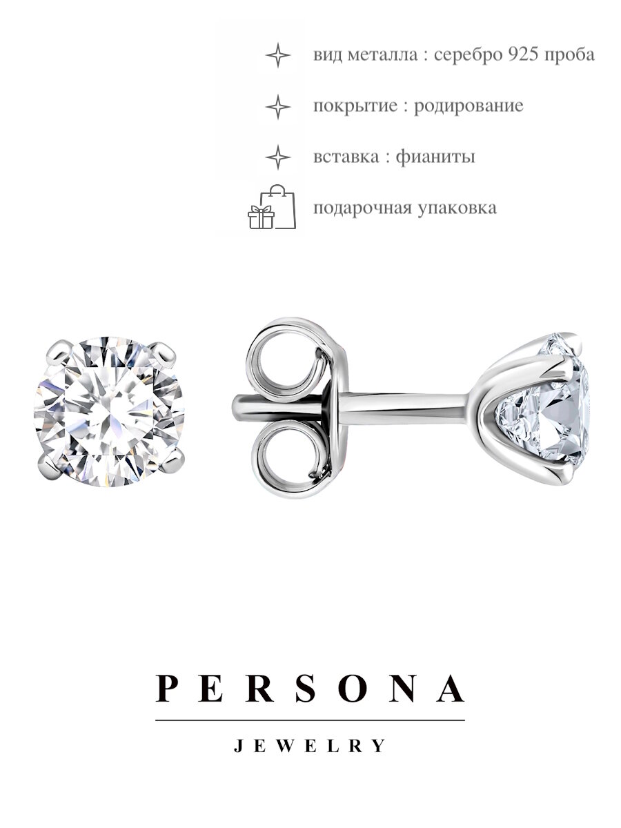 Отзывы на Серьги пусеты ПЕРСОНА, серебро, 925 проба, родирование, фианит, размер 5 мм, длина 1.3 см, , серебро