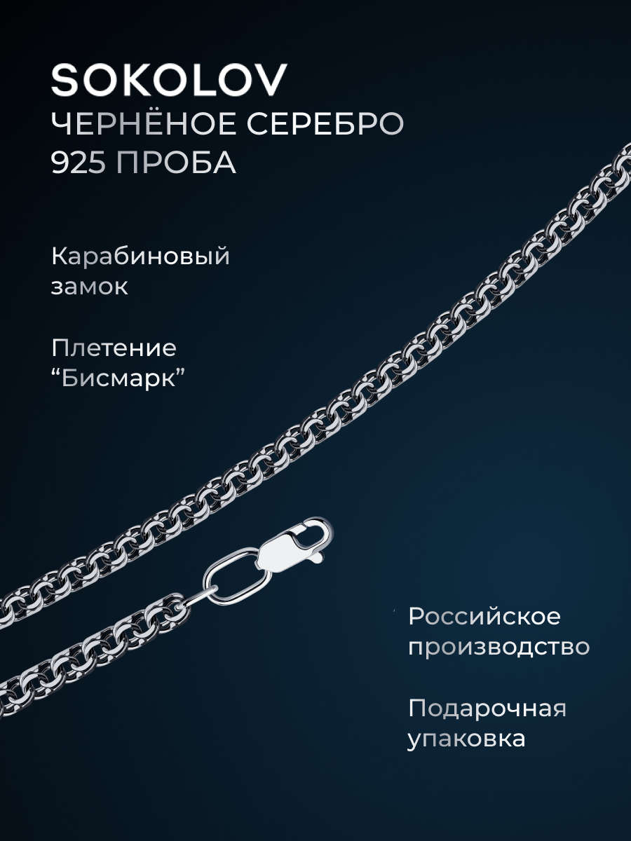Отзывы на Цепь SOKOLOV, серебро, 925 проба, чернение, длина 55 см, средний вес 8.84 г