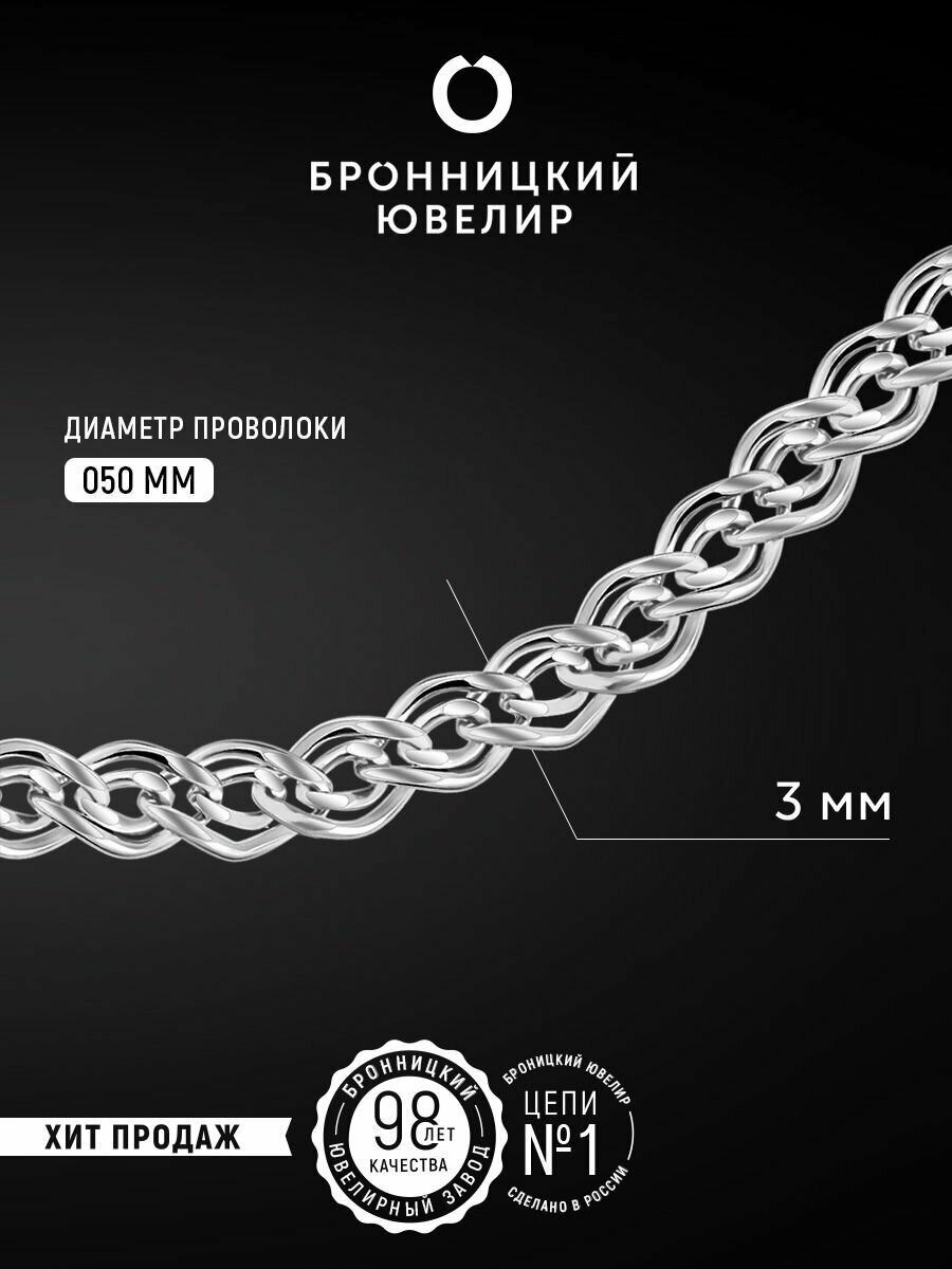 Бронницкий ювелир Цепочка серебряная автоматного плетения "Двойной ромбо (ромб)" женская, детская