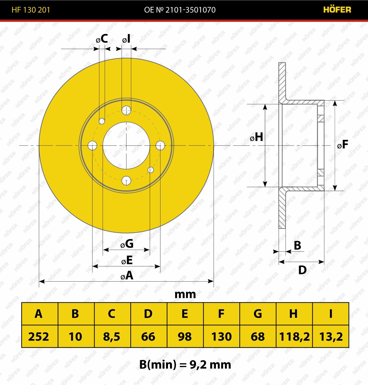 Тормозной диск ВАЗ 2101-07 R13 HF 130 201 HOFER пара информация: