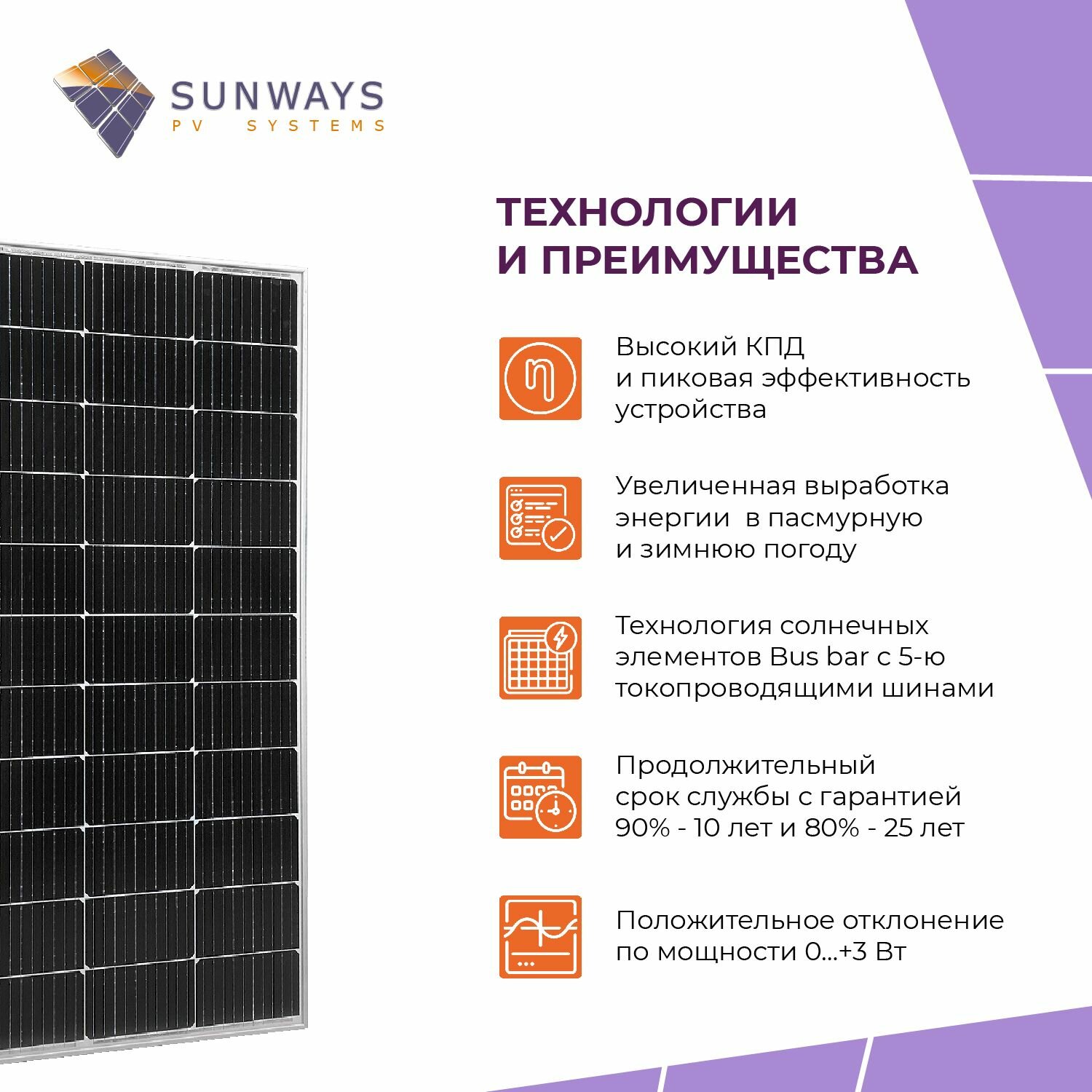 Комплект солнечных панелей FSM 150M M10 SUNWAYS, солнечная батарея для дома 150 Вт, для дачи, 12В, 2шт. информация: