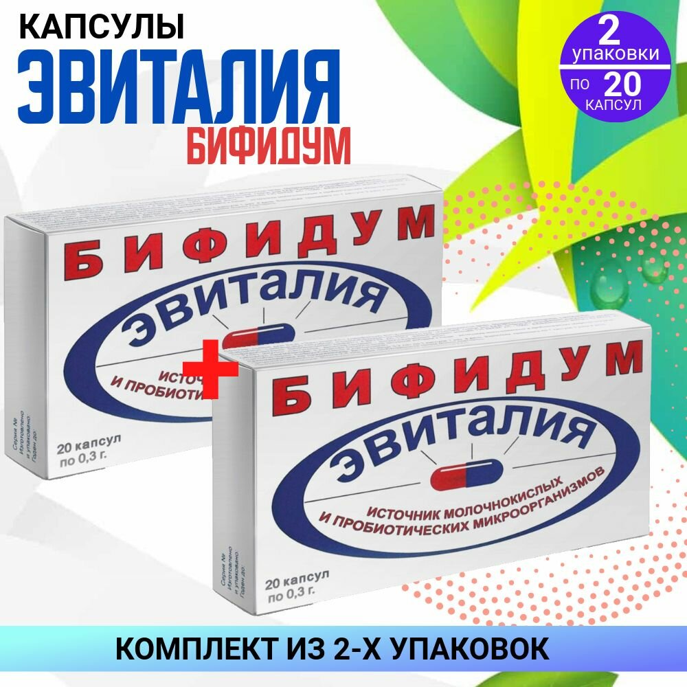 Эвиталия Бифидум, 2 упаковки по 20 капсул, комплект из 2х упаковок информация: