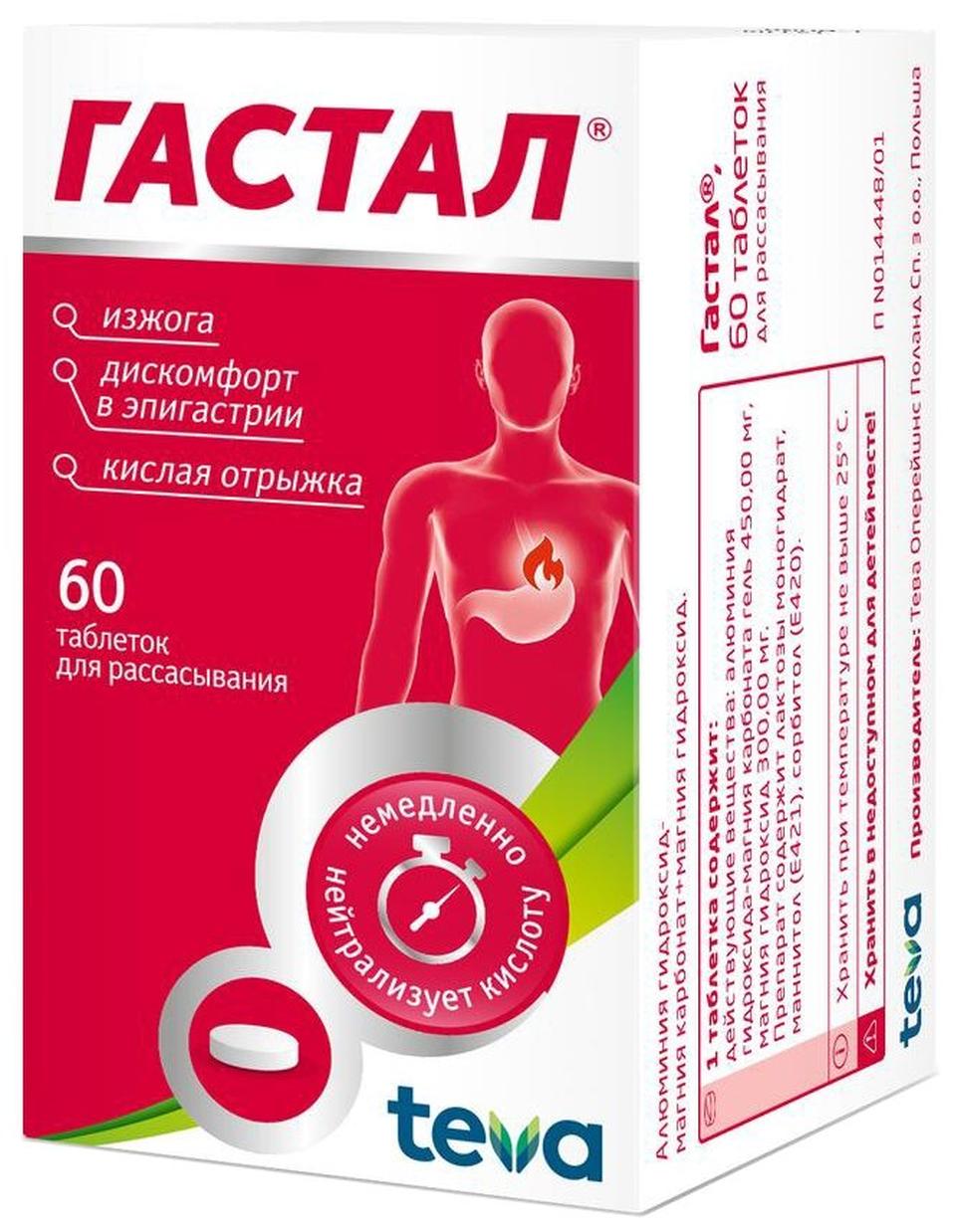 Гастал, таблетки, 60 шт 732 ₽