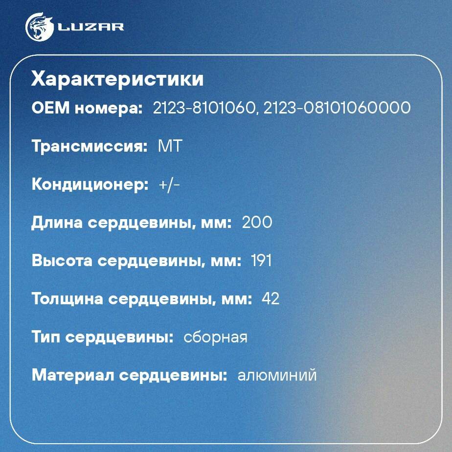 Отзывы на Радиатор отопителя для автомобилей Chevrolet Niva (02-) (алюм, сборный) LRh 0123 LUZAR