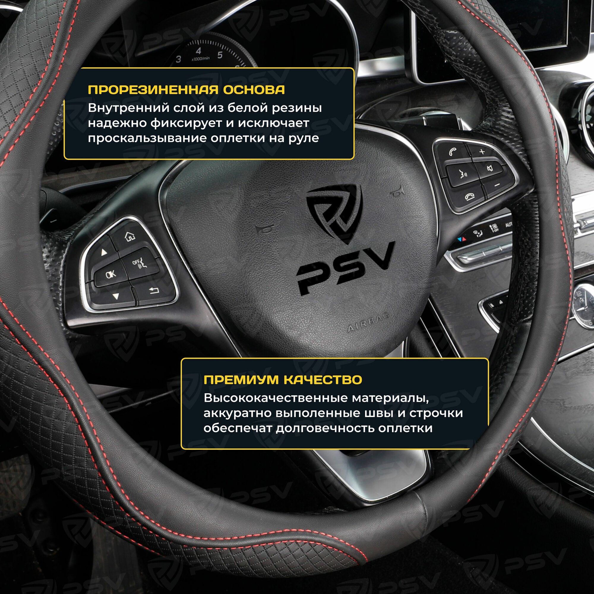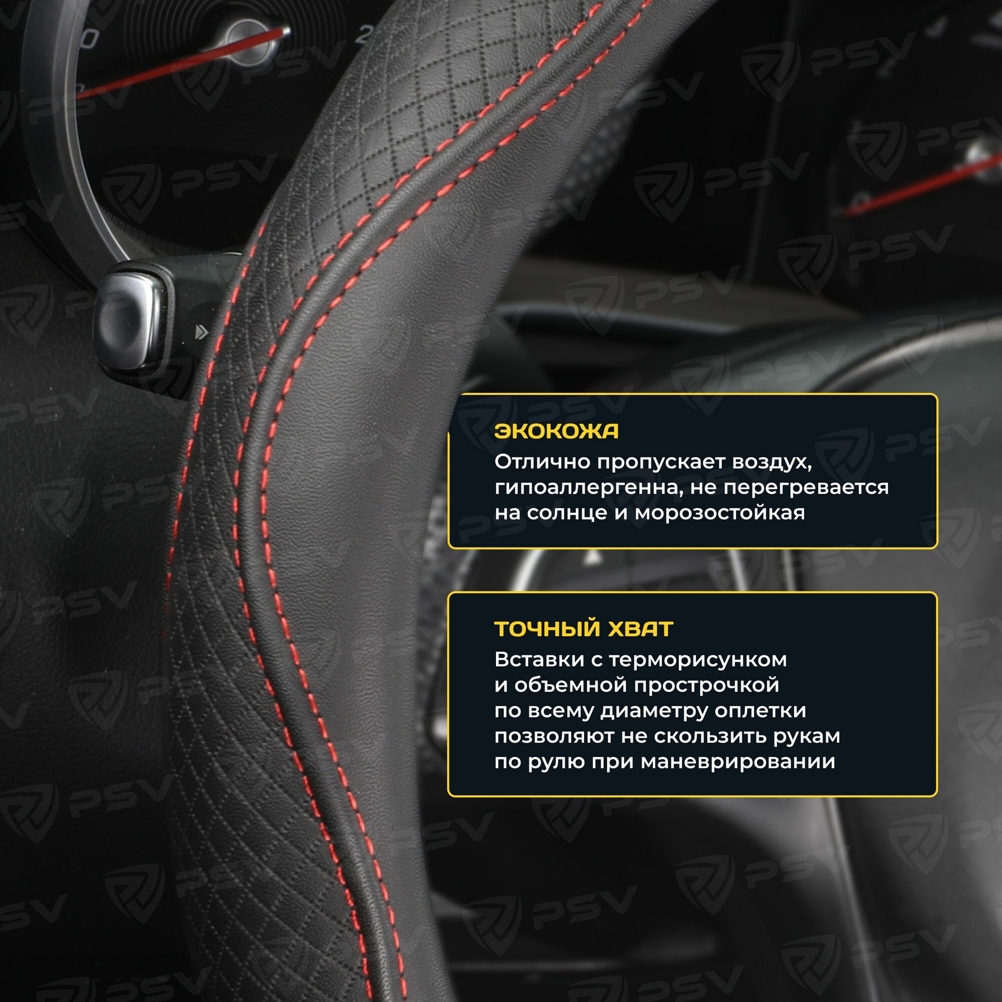 PSV 136843 Оплетка на руль "PSV" иск.кожа ILLUSION (Черный/Отстрочка черная) M 1 098 ₽