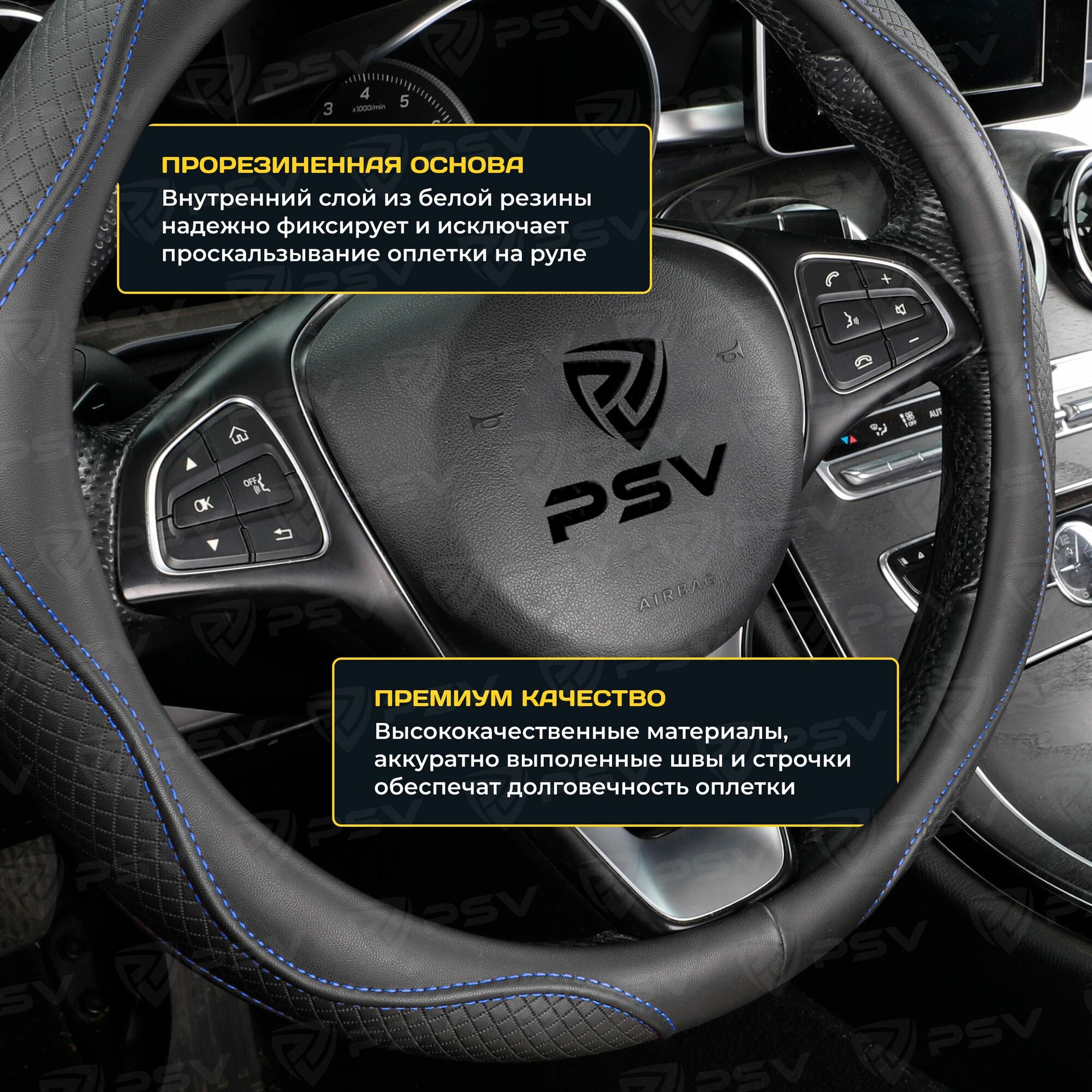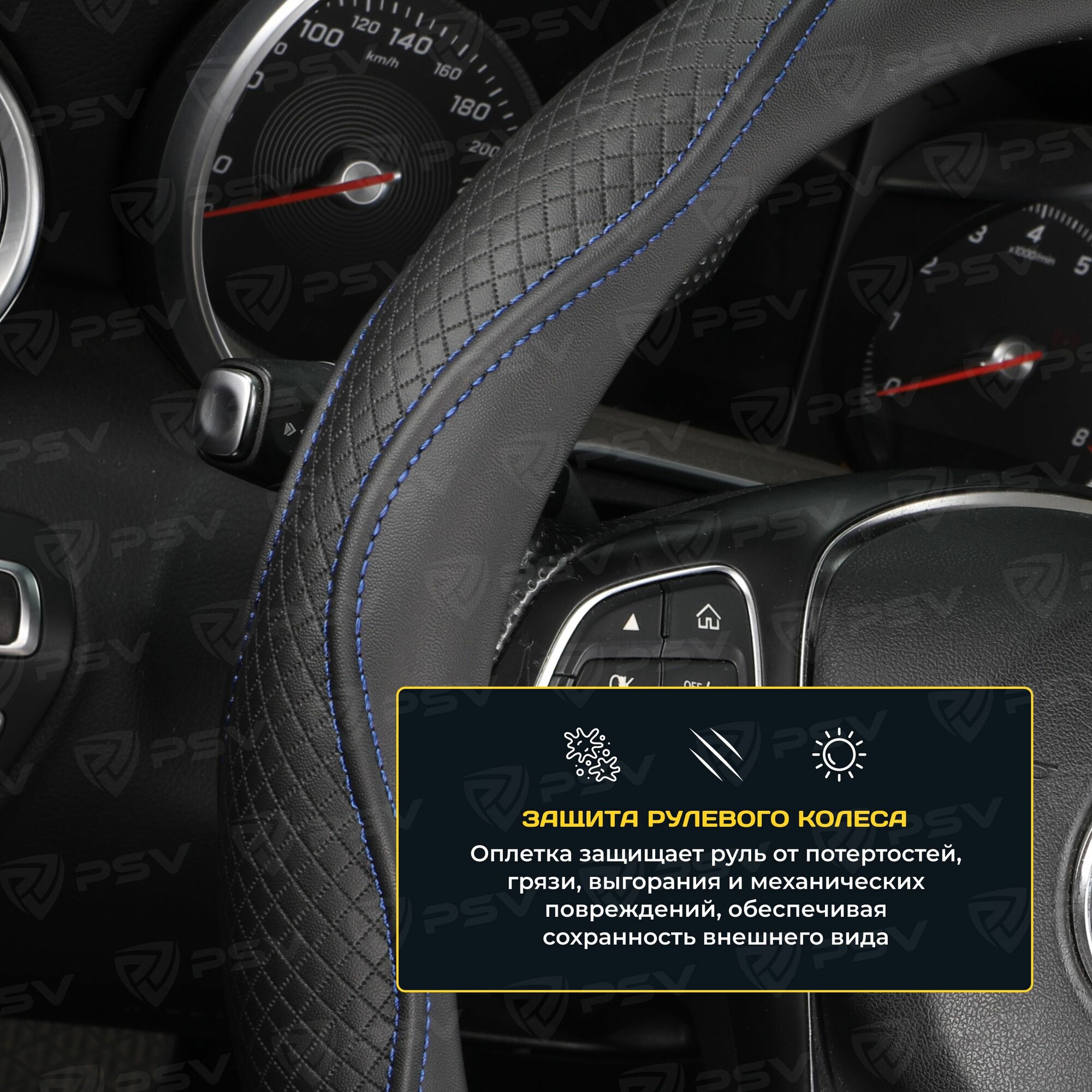Оплетка чехол на руль PSV ILLUSION (Черный/Отстрочка синяя) M 37-39 см, экокожа, 136846 990 ₽