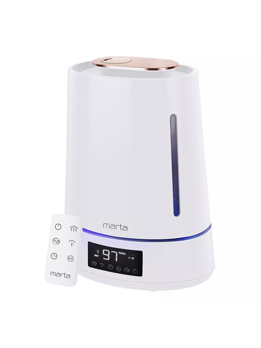 Отзывы на Увлажнитель воздуха ультразвуковой MARTA MT-HF4701D верхний залив антивирусная УФ - лампа функция теплый пар белый жемчуг