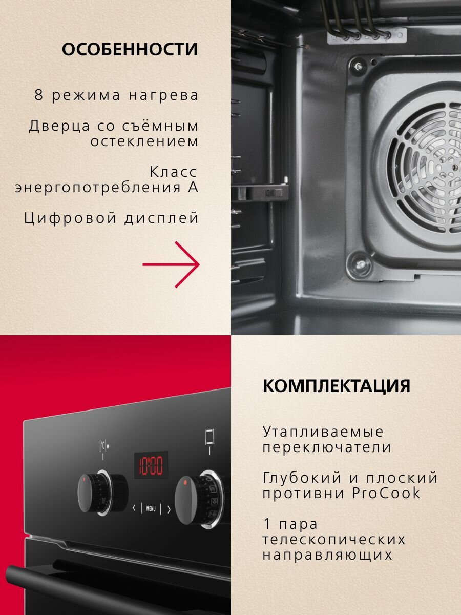 10 цен на Электрический духовой шкаф Hansa BOES68438, встраиваемый, 60 см, 65 л, 8 режимов, с таймером, грилем, конвекцией и телескопическими направляющими, черный