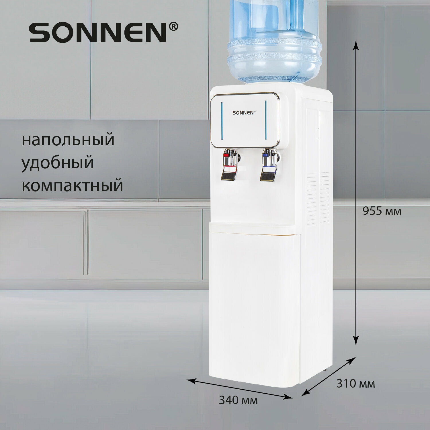 10 цен на Кулер для воды напольный с нагревом и охлаждением, диспенсер с 2 кранами, шкафом белый, Sonnen FSE-02Wc, 456167