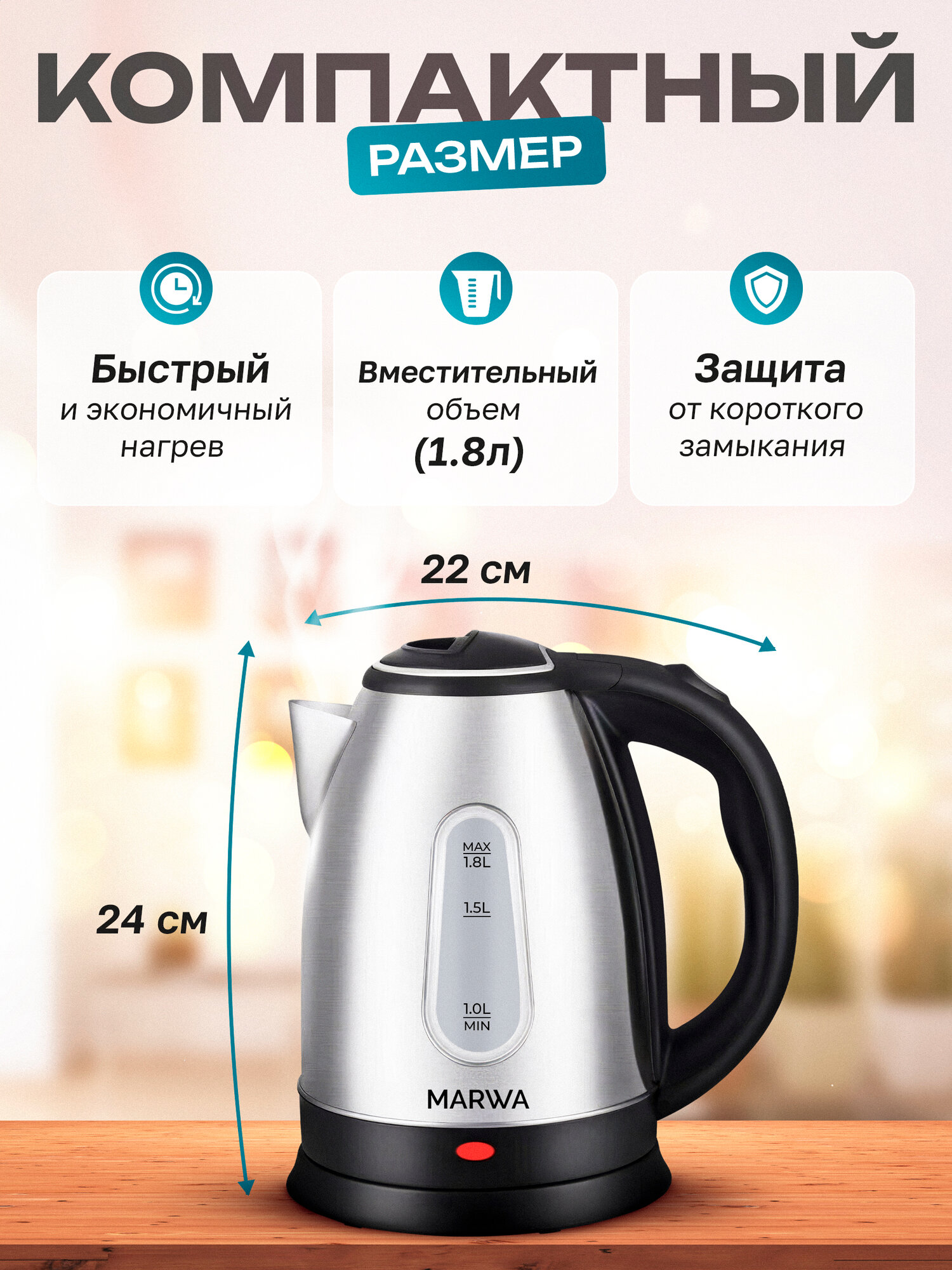 Отзывы на Чайник металлический электрический MARWA A-22 с LED-подсветкой 1,8 литра