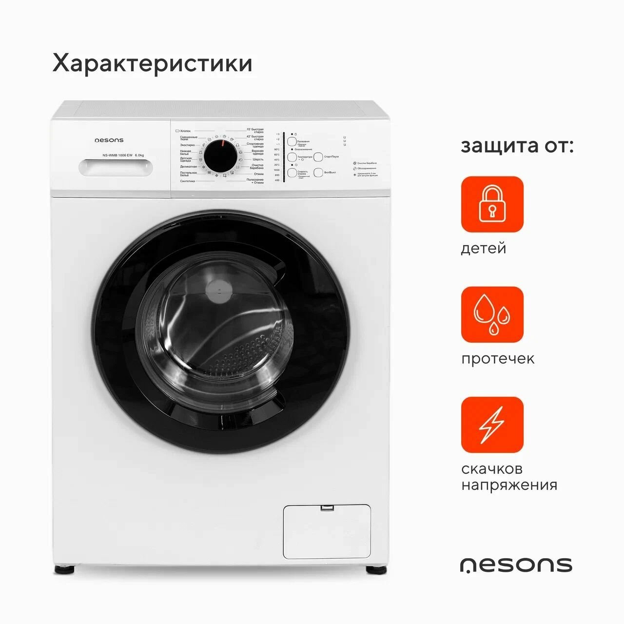 Стиральная машина автомат узкая 6 кг белая Nesons NS-WMB1006EW информация: