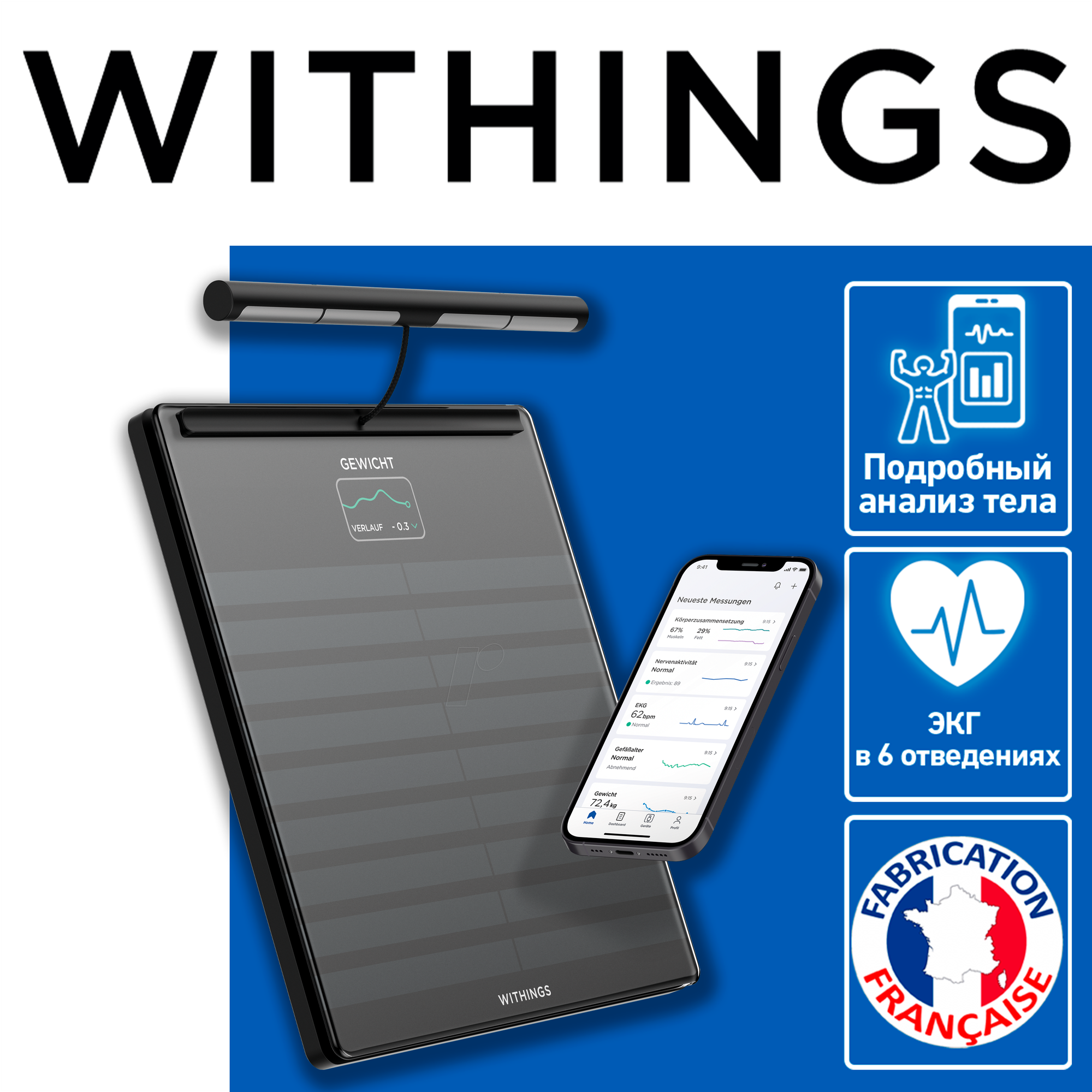 10 цен на Умные весы Withings Body Scan, чёрные, ЭКГ в 6 отведениях, с анализом состава тела