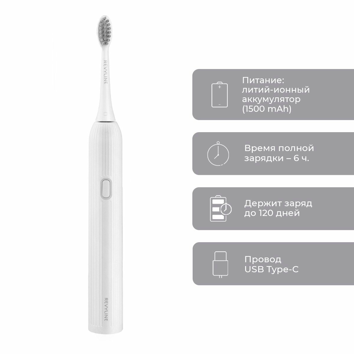 Электрическая зубная щетка Revyline "RL 060", звуковая, 4 режима, Li-ion аккумулятор информация: