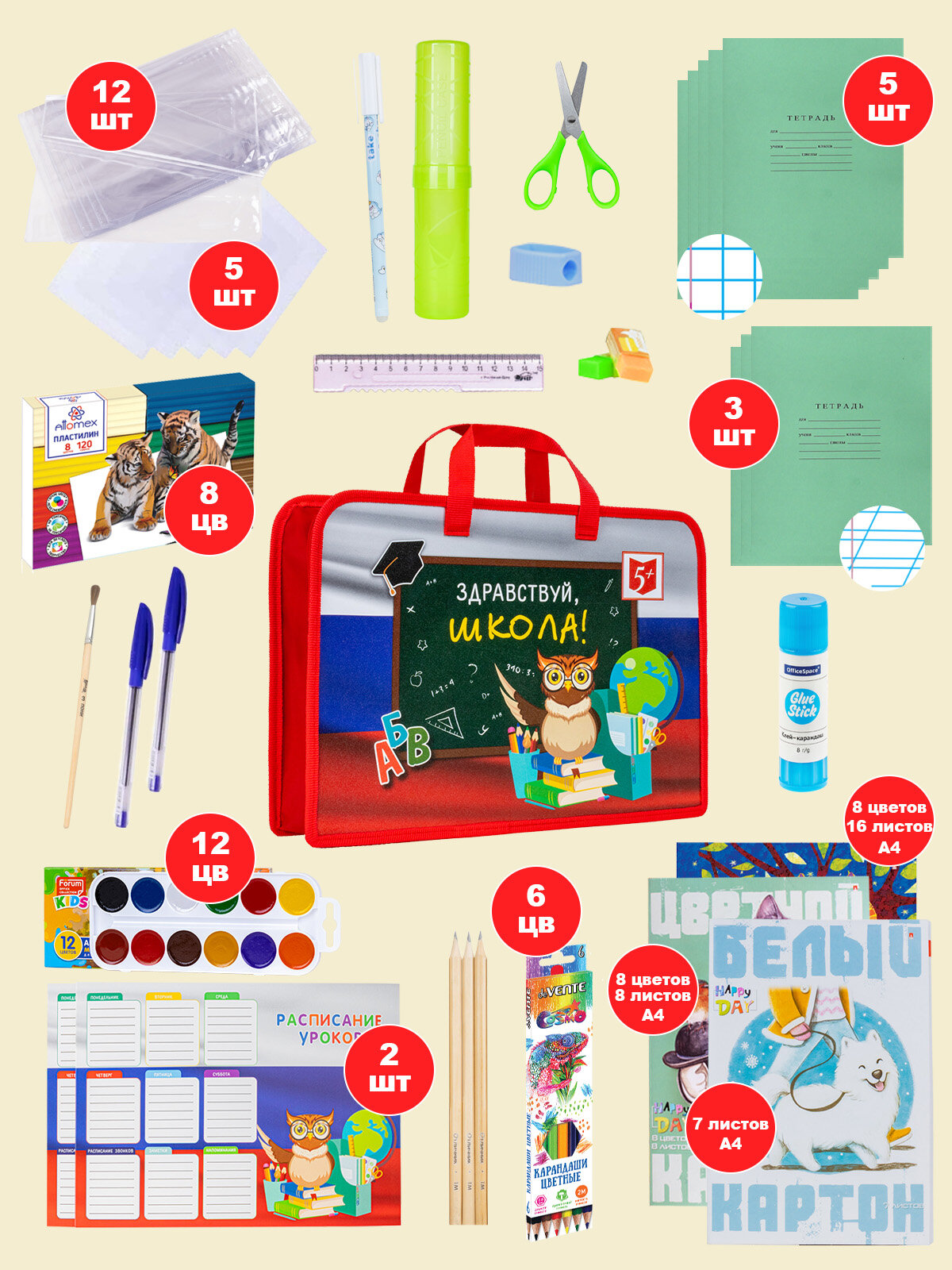 Набор первоклассника в папке "Здравствуй, школа!" для мальчиков, 31 предмет