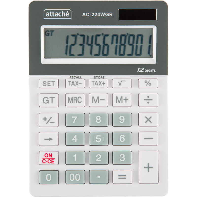 Калькулятор настольный Attache, AС-224WGR,12р, двойное питание, бело-серый 1779755 информация: