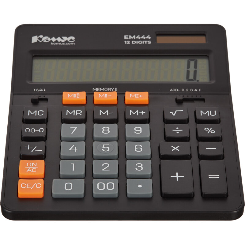Калькулятор настольный полноразм. Комус EM444, 12-р, дв. пит,204x155мм, черн 1550709 информация: