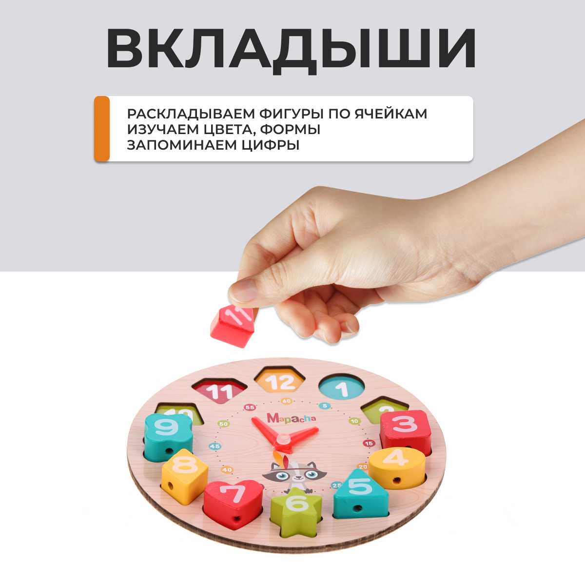 10 цен на Обучающая игра Mapacha "Деревянные часы", шнуровка, сортер, вкладыши