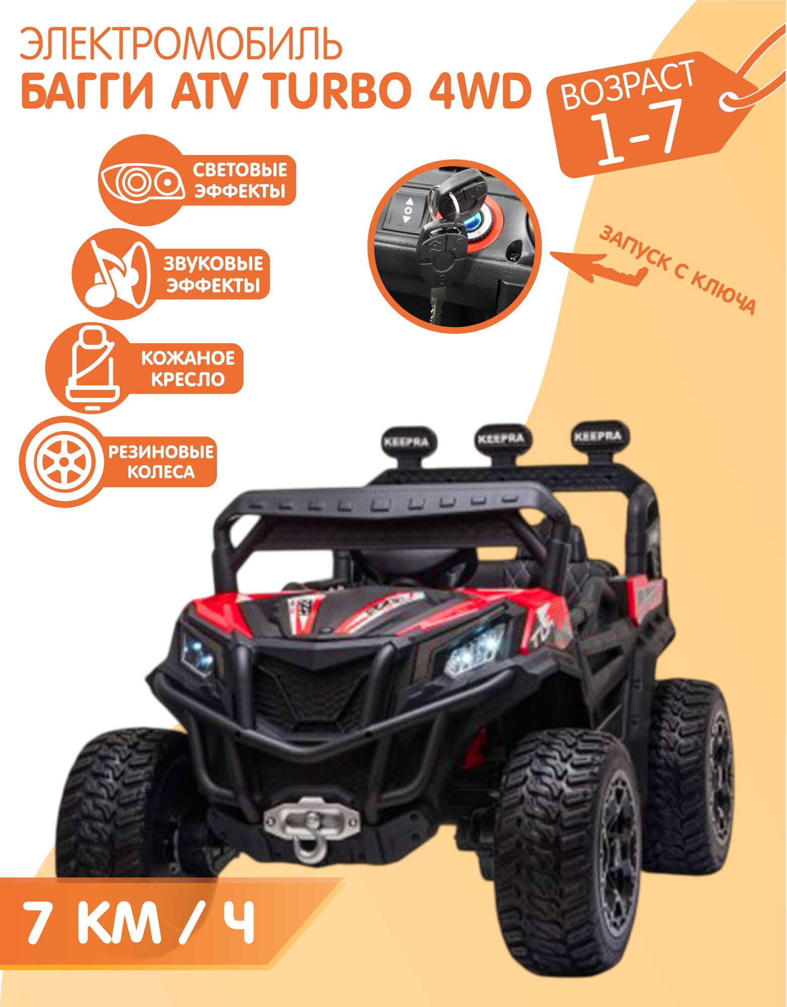 Электромобиль Багги ATV Turbo Полный привод (Красный) + запуск С ключа информация: