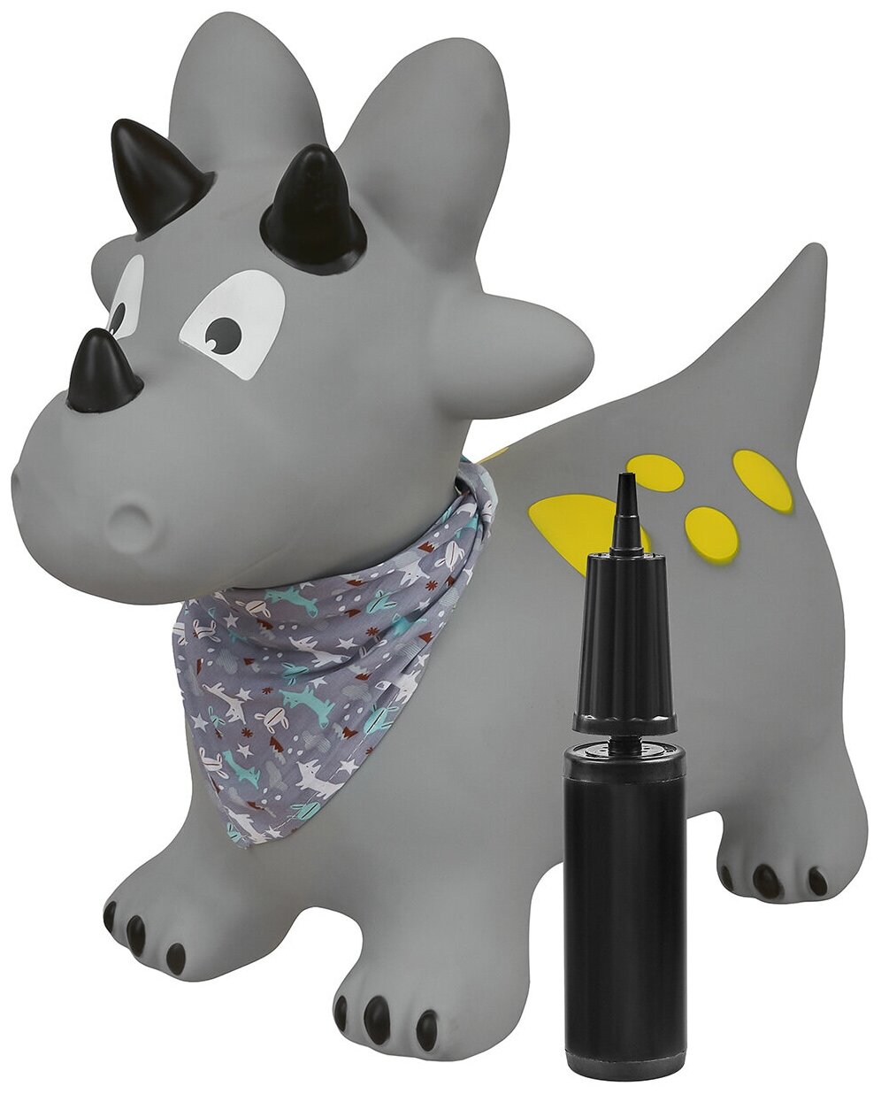 Прыгун Серый динозавр Денвер, детская надувная развивающая игрушка-тренажер (в комплекте с насосом и платком-банданой) информация: