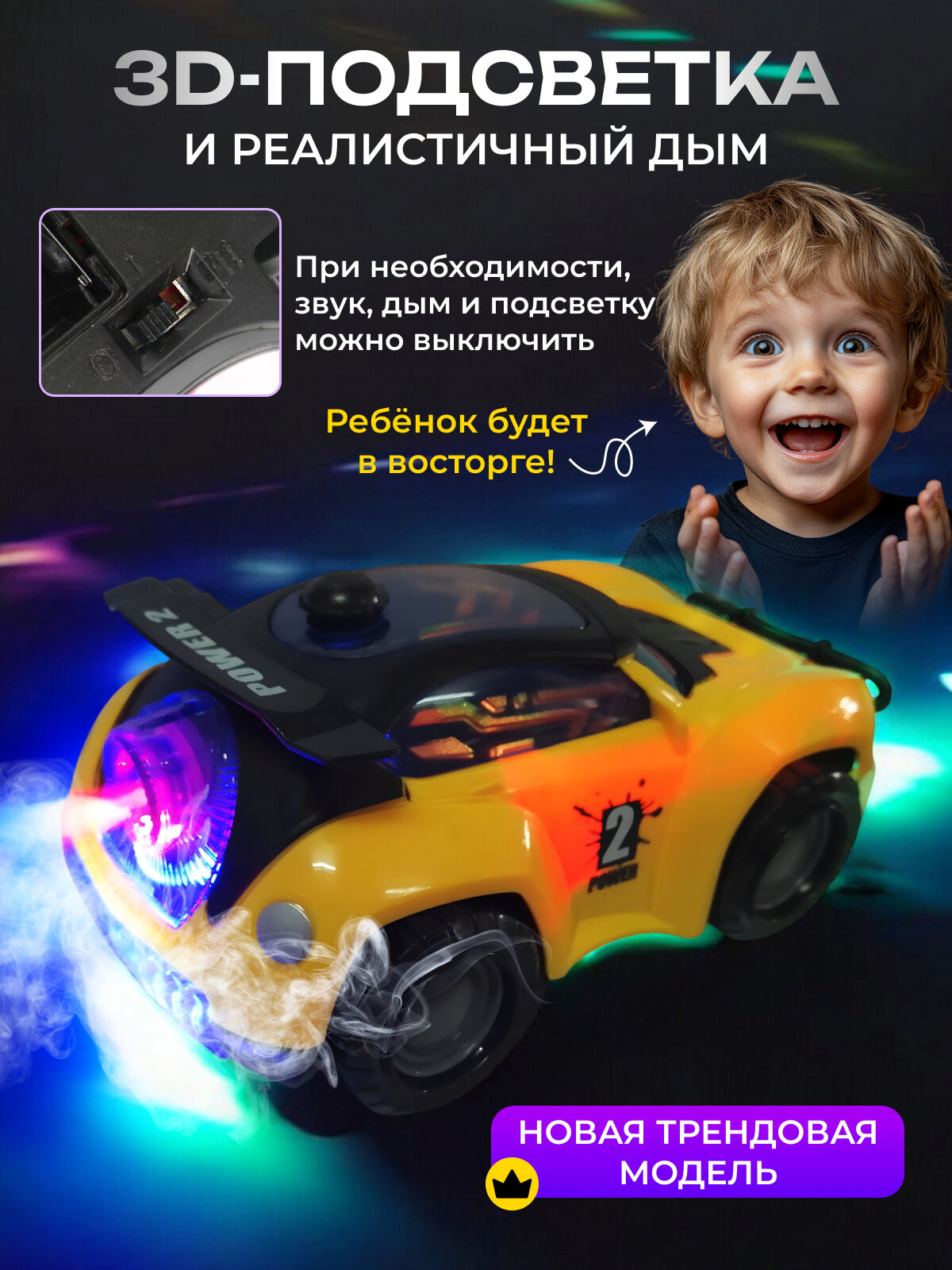 Отзывы на Машинка гоночная с эффектом дыма, игрушка светящаяся музыкальная, машина подарок ребенку, цвет желтый, Discount Shop