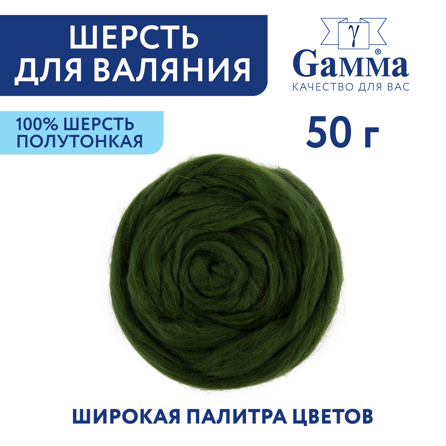 Шерсть для валяния, полутонкая "Gamma" TFS-050 №1384 м. водоросли информация: