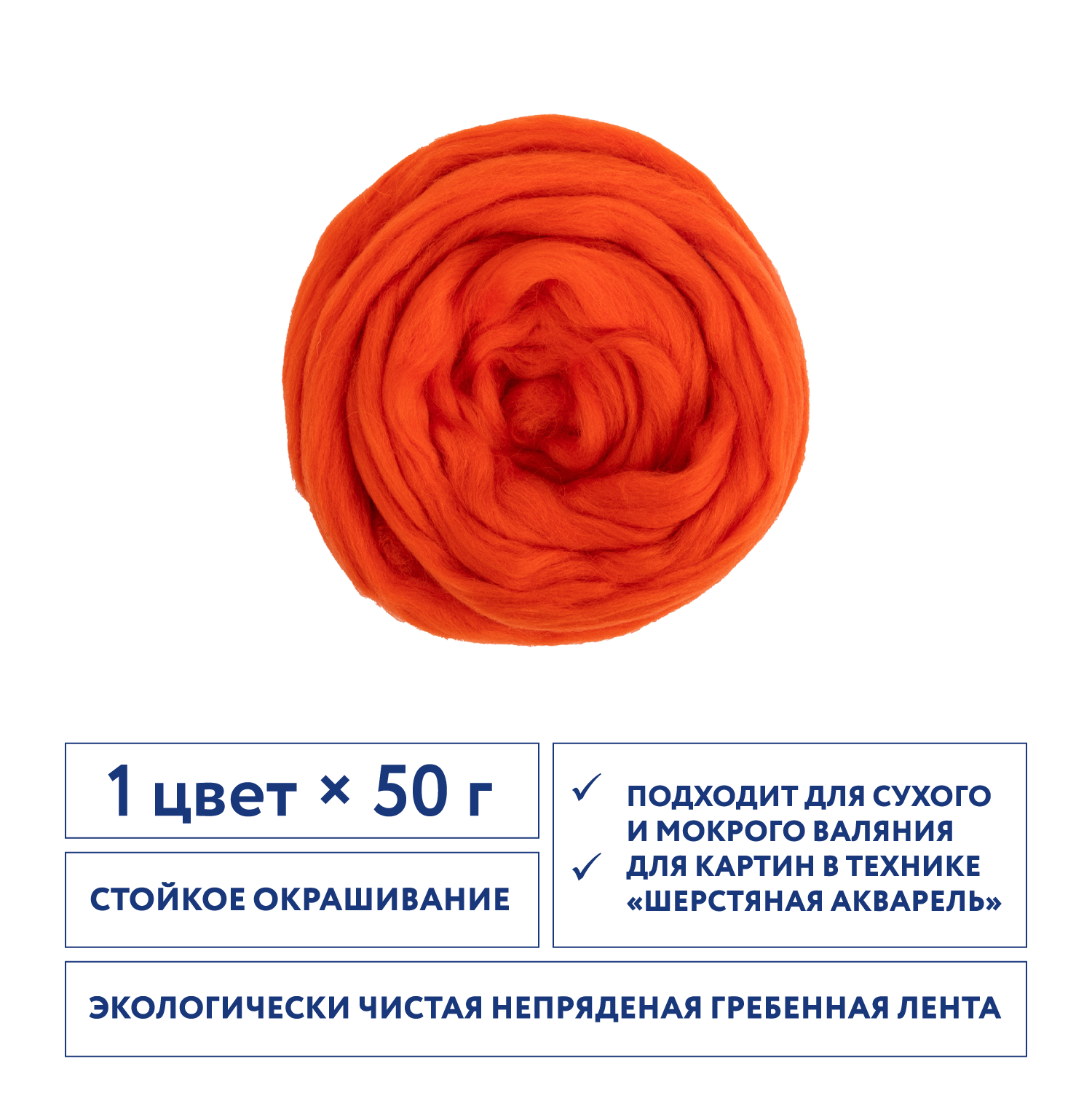 Шерсть для валяния "Gamma" TFS-050 100% полутонкая шерсть 50 г №0491 оранжевый