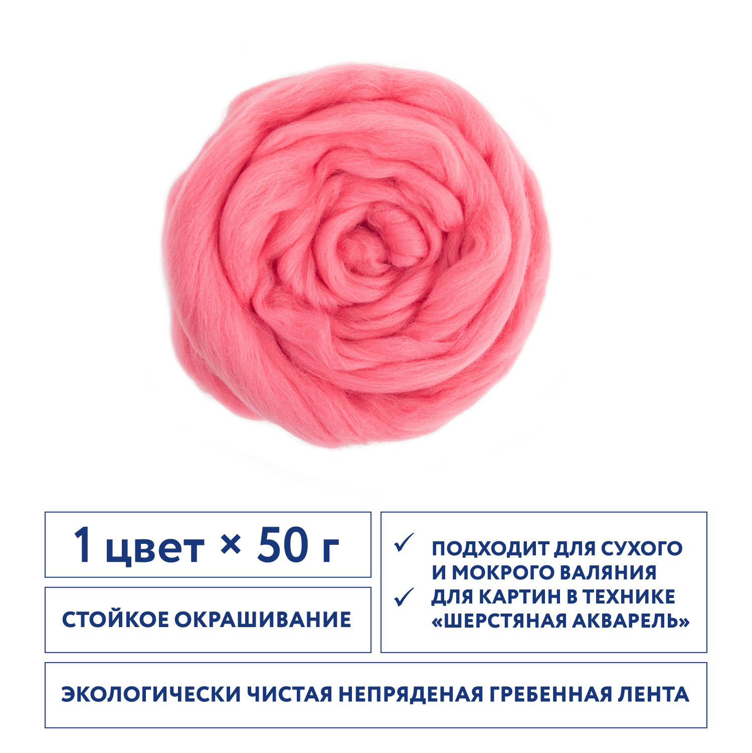 Шерсть для валяния 100% мериносовая овечья полутонкая 50г коралл TFS-050-1398