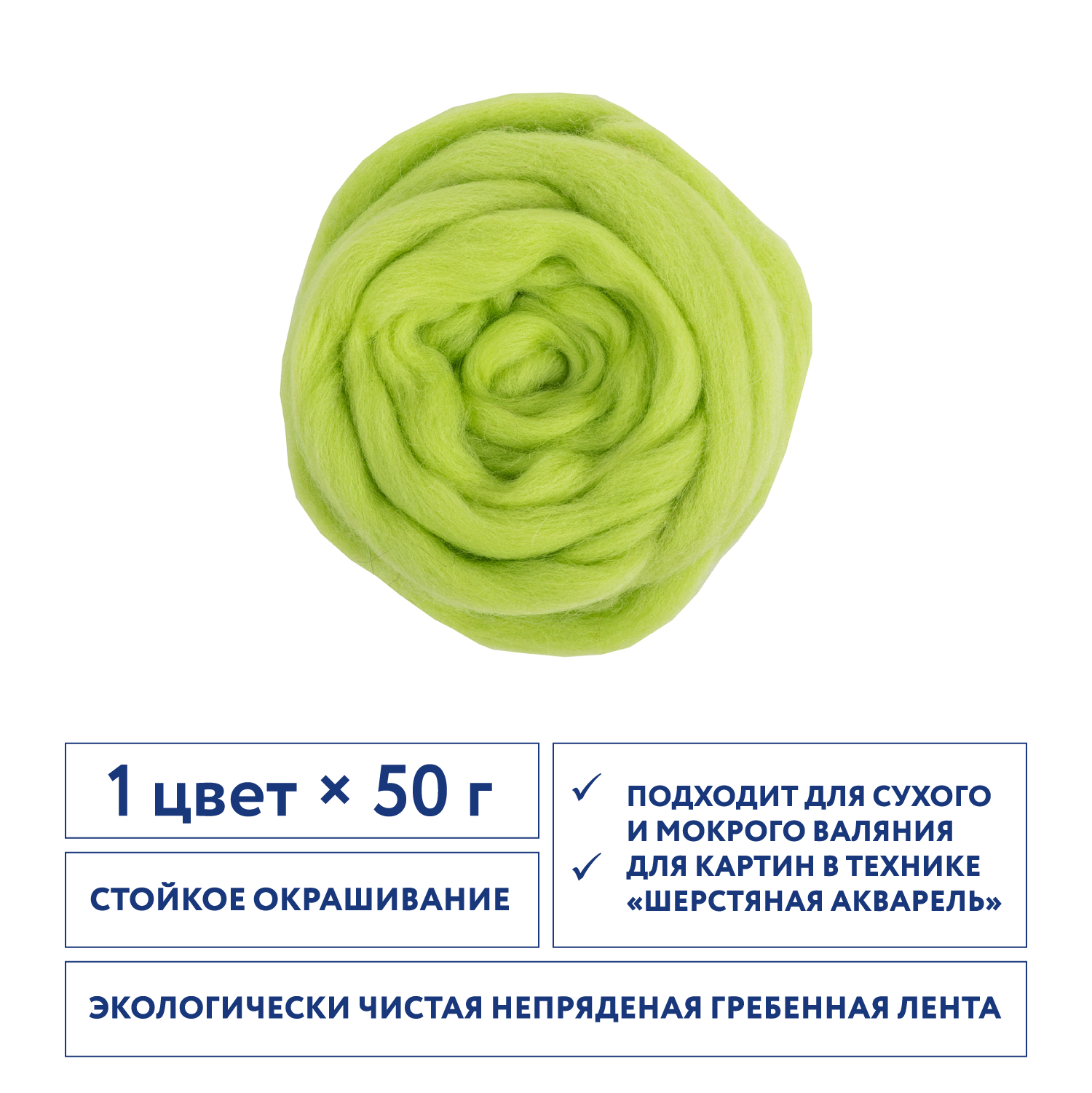 Валяние - шерсть Gamma TFS-050 "Шерсть для валяния" 100% полутонкая шерсть 50 г №1362 киви