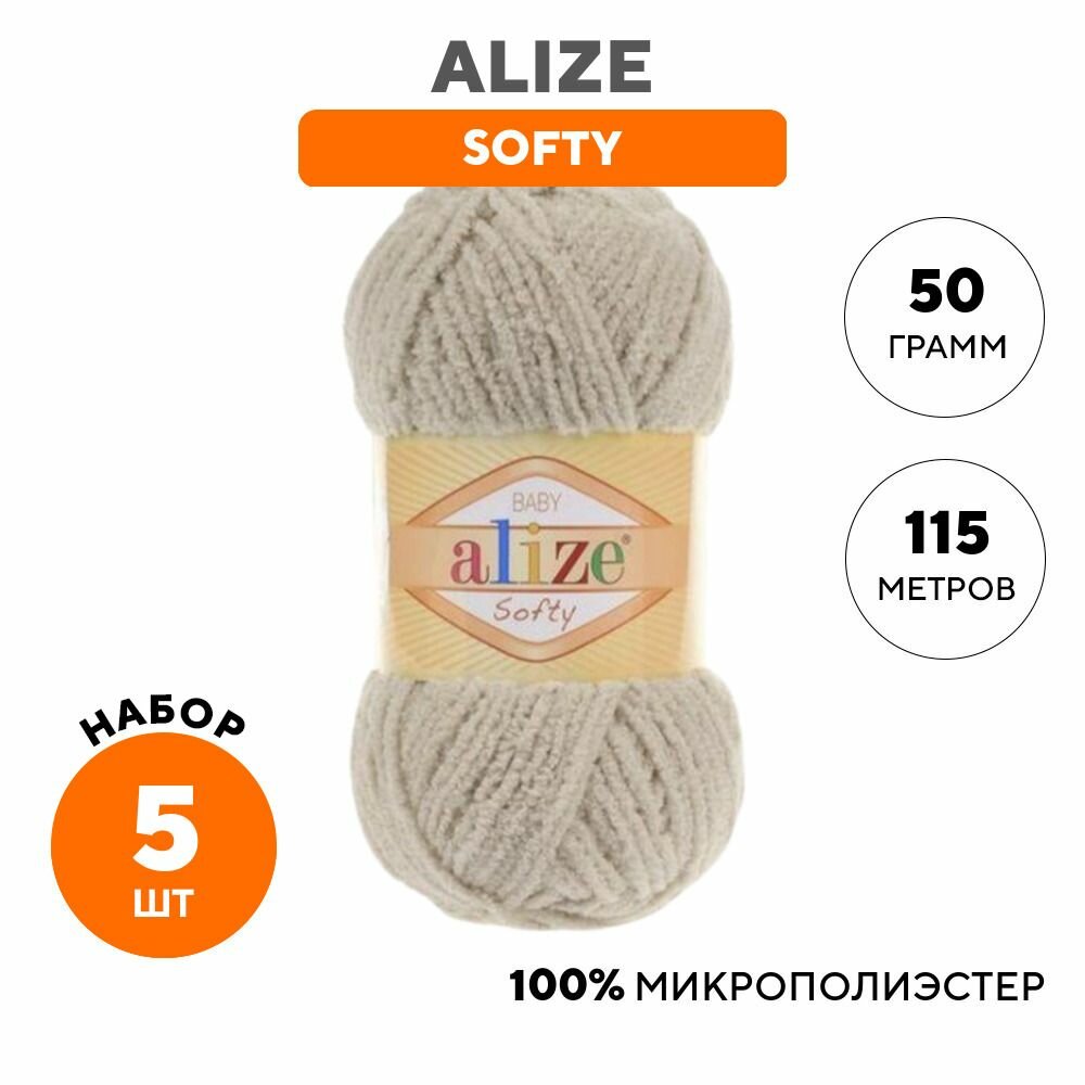 Пряжа ALIZE SOFTY, св. бежевый - 115, 100% микрополиэстер, 5 мотков, 50 г, 115 м. информация: