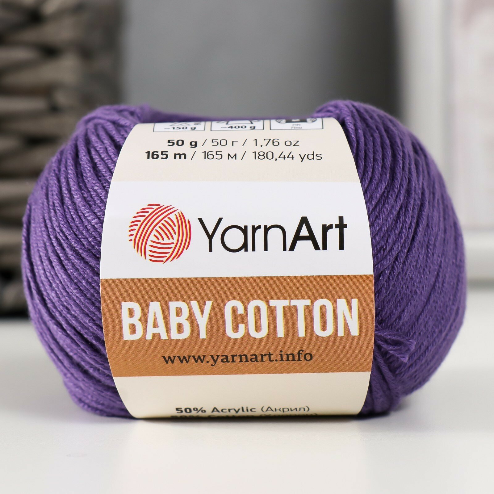 10 цен на Пряжа для вязания YarnArt Baby Cotton (Бэби Коттон) - 1 моток 455 фиолетовый, для детских вещей и амигуруми, 50% хлопок, 50% акрил, 165 м/50 г