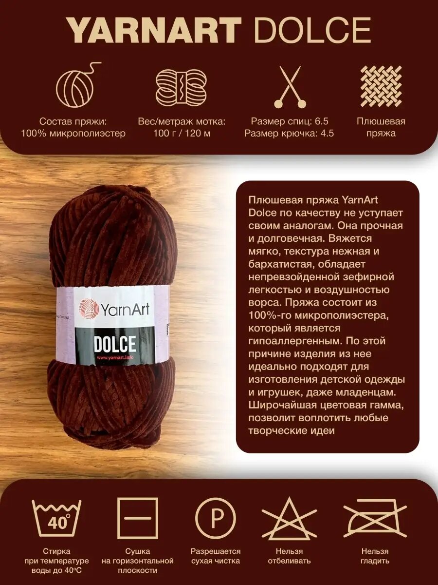 Пряжа YarnArt Dolce терракот (793), 100%микрополиэстер, 120м, 100г, 3шт 1 158 ₽