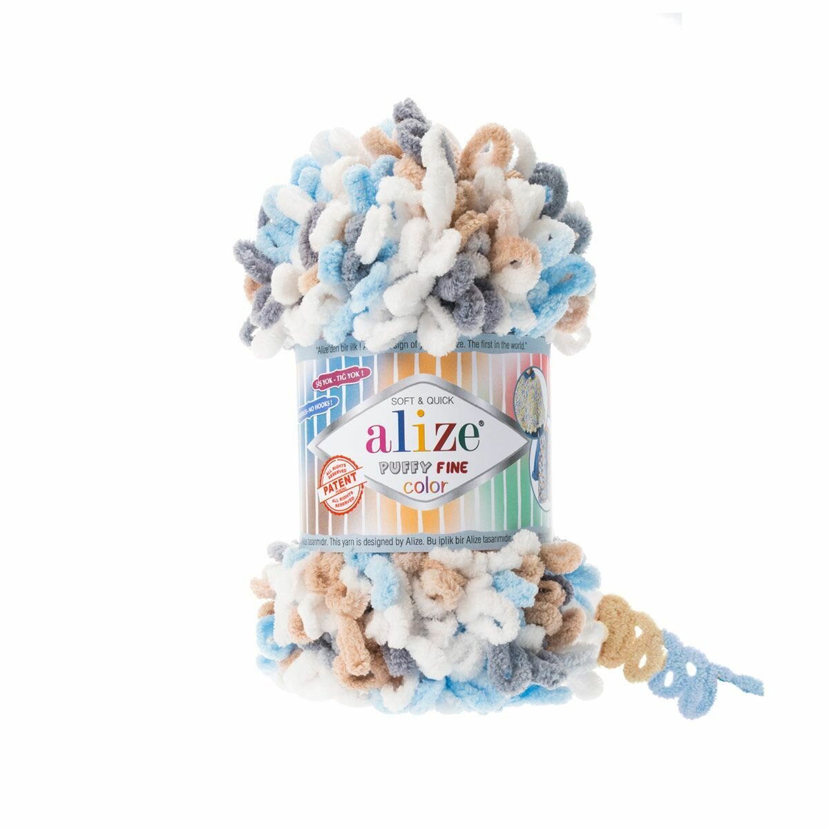Пряжа Alize Puffy fine color белый-голубой-серый-бежевый (5946), 100%микрополиэстер, 14.5м, 100г, 5шт