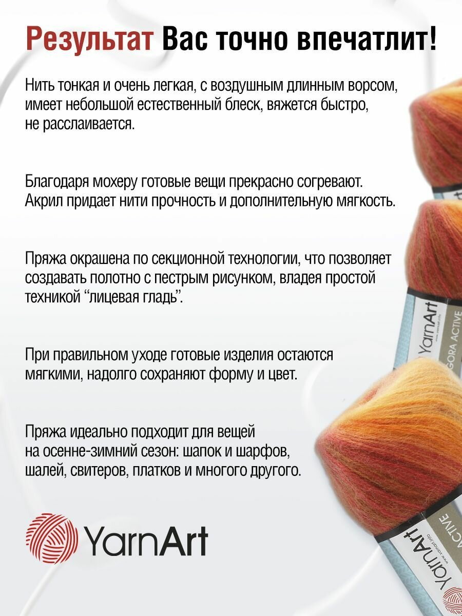 Пряжа для вязания YarnArt 'Angora Active' 100г, 500м (20% мохер, 80% акрил) (841 меланж), 5 мотков 1 255 ₽