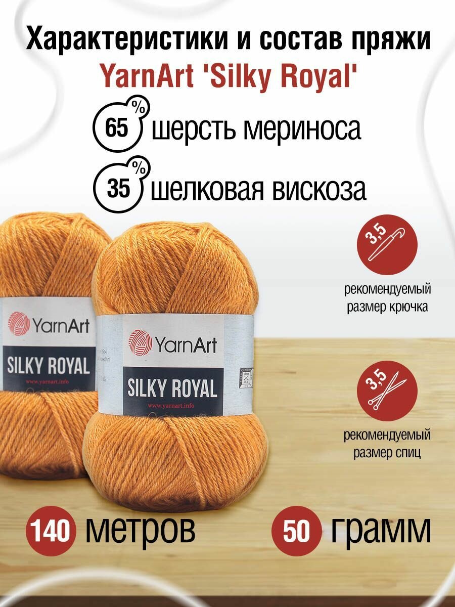 Пряжа для вязания YarnArt 'Silky Royal' 50г, 140м (35% шелковая вискоза, 65% шерсть мериноса) (445 горчичный), 5 мотков информация: