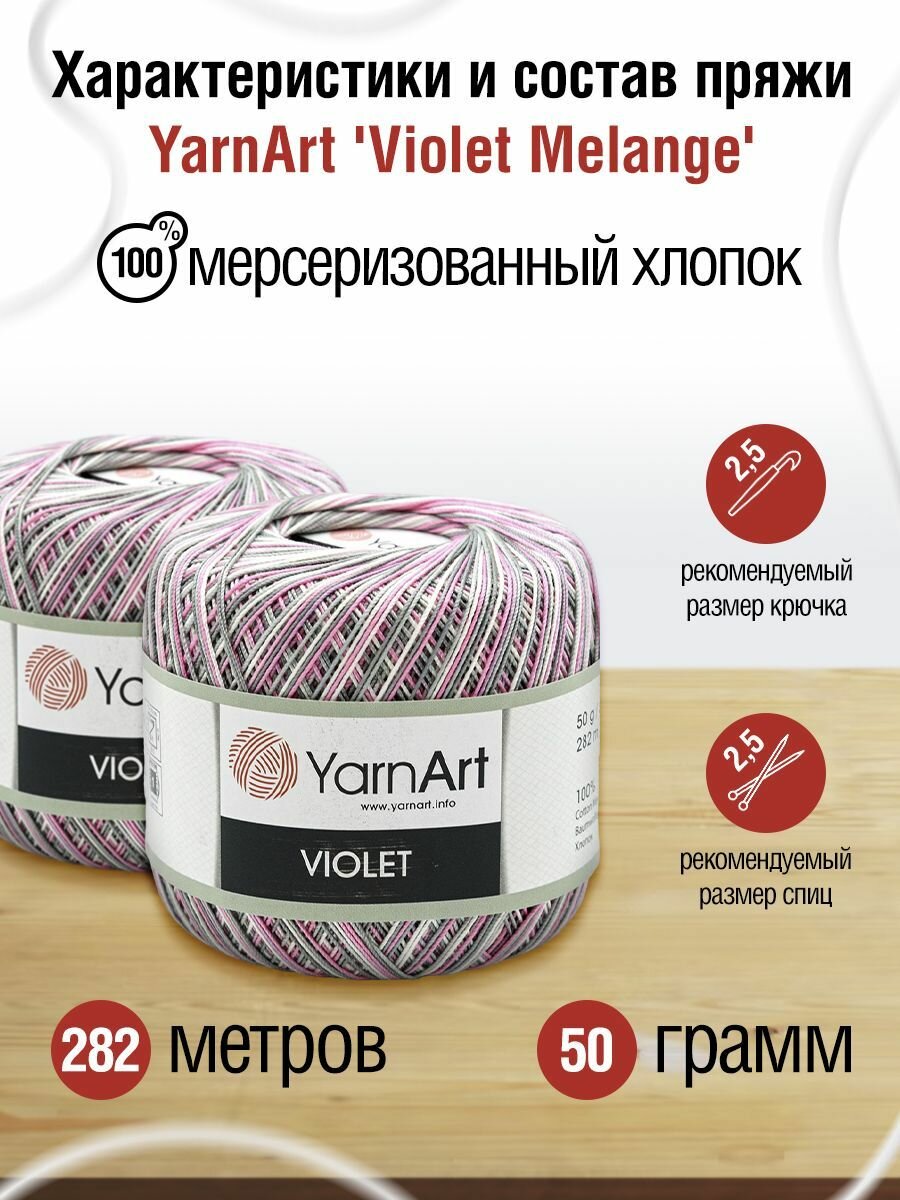 Пряжа для вязания YarnArt 'Violet Melange' 50г, 282м (100% мерсеризированный хлопок) (504 меланж), 6 мотков информация: