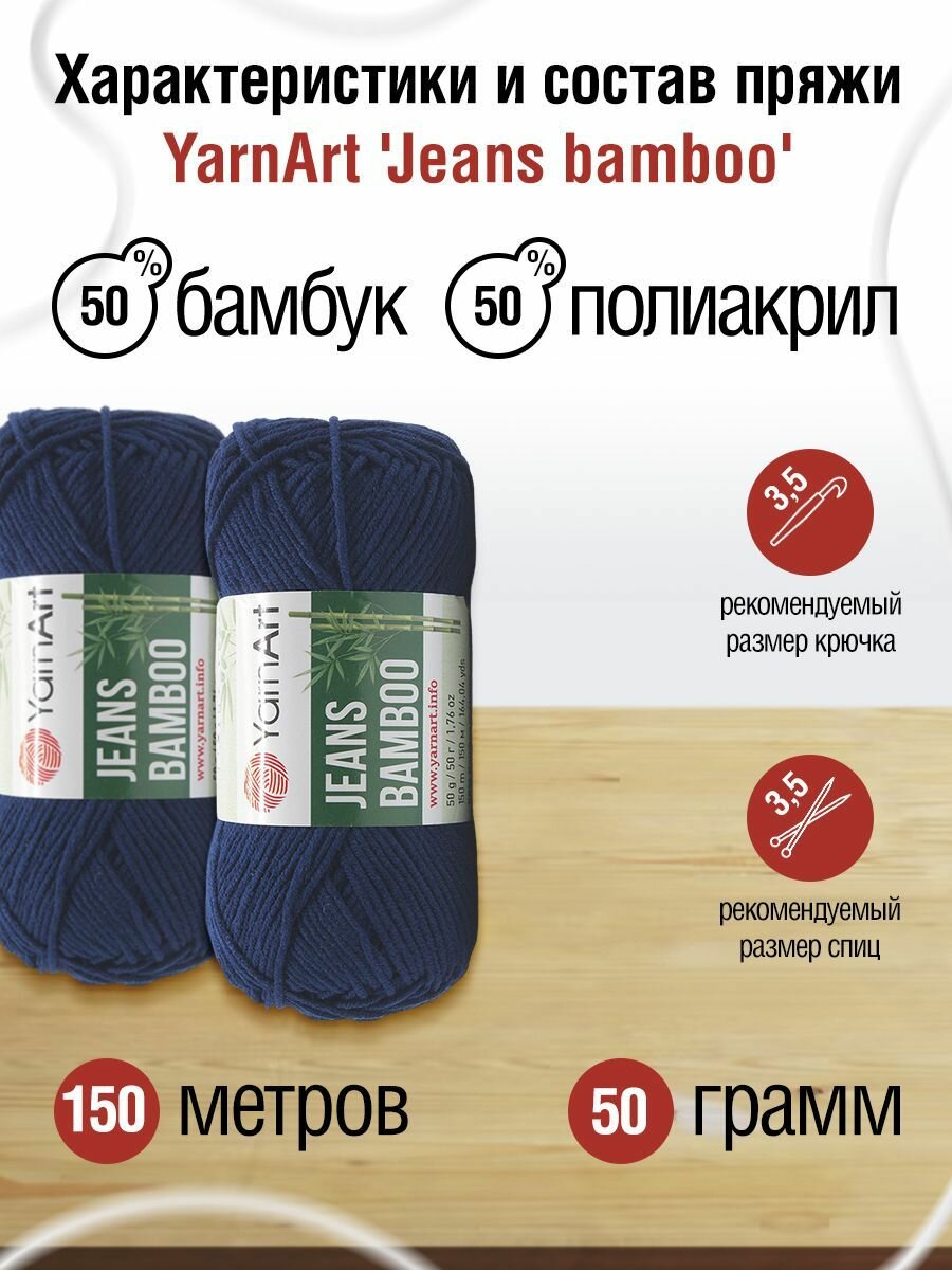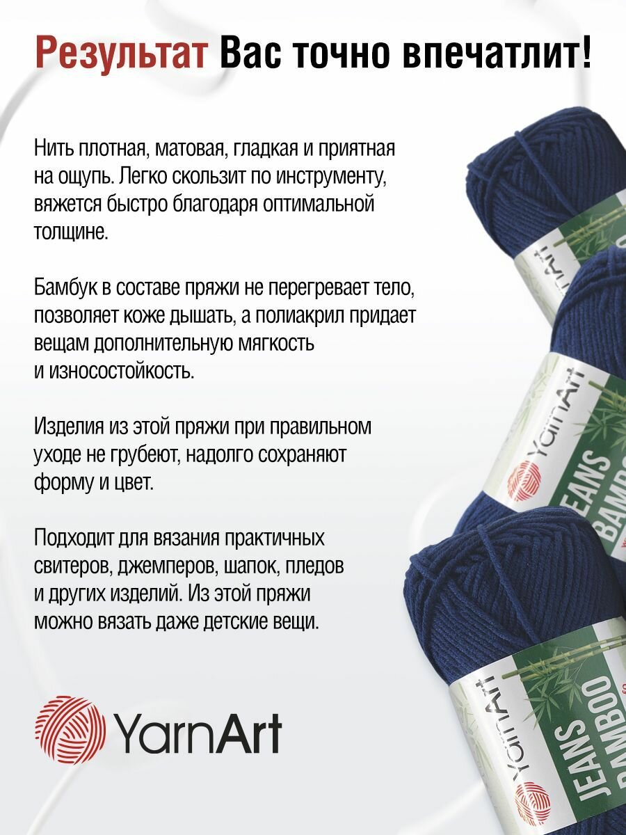 Отзывы на Пряжа для вязания YarnArt 'Jeans bamboo' 50г, 150м (50% бамбук, 50% полиакрил) (125 темно-синий), 10 мотков