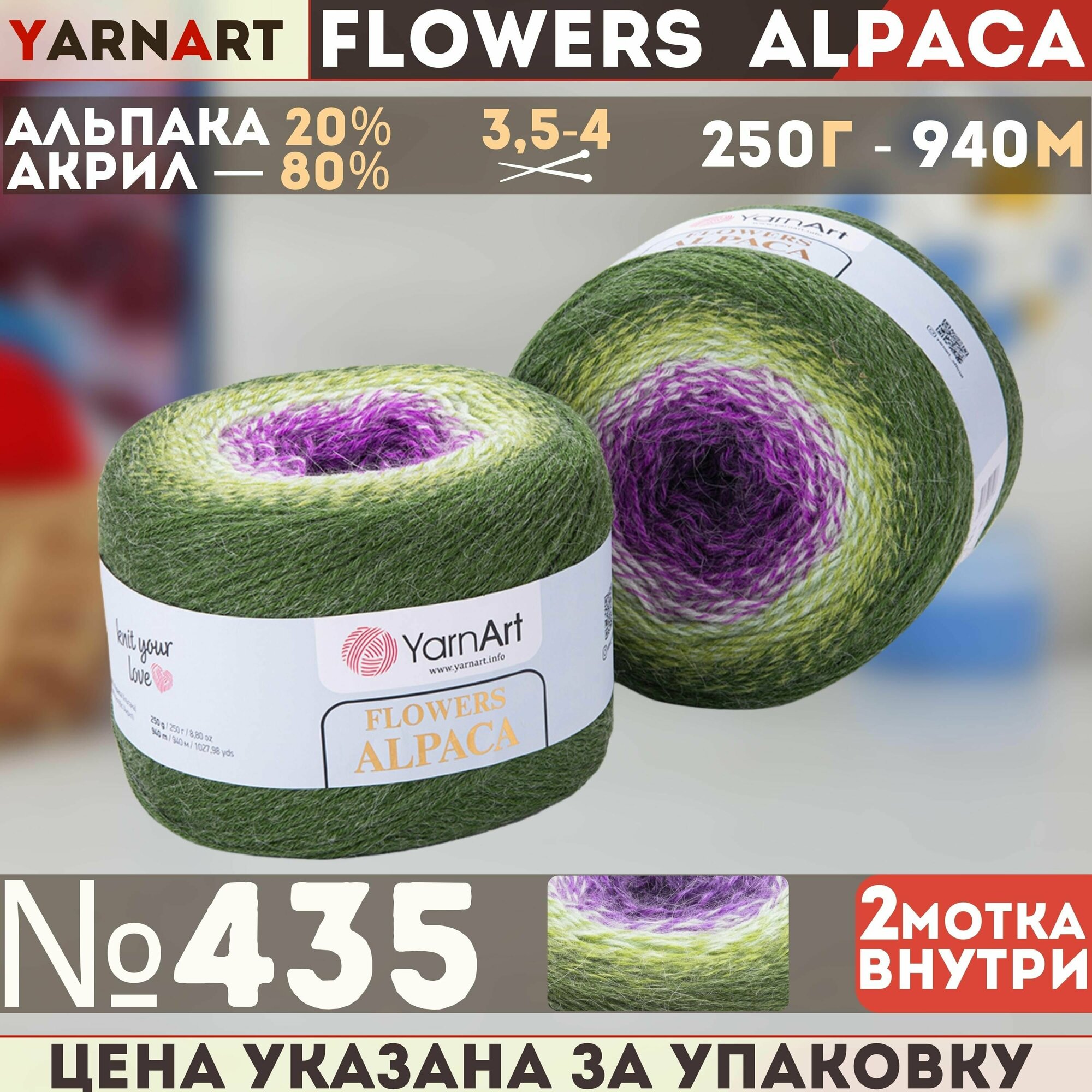 10 цен на Пряжа YARNART Flowers Alpaca YarArt, зеленый - 435, 20% альпака, 80% акрил, 2 мотка, 250 г, 940 м.
