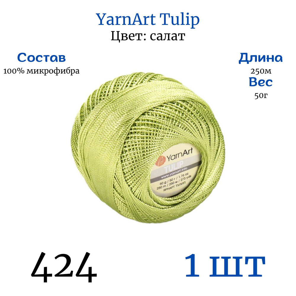 Пряжа Yarnart Tulip салатовый (424), 100%микрофибра, 250м, 50г, 1шт 278 ₽