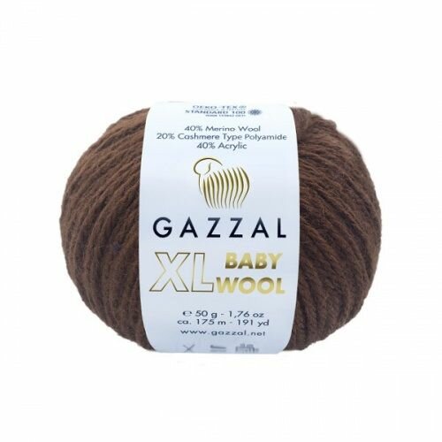Пряжа Gazzal Baby Wool XL кофейный (835), 40%шерсть мериноса/20%кашемирПА/40%акрил, 100м, 50г, 1шт
